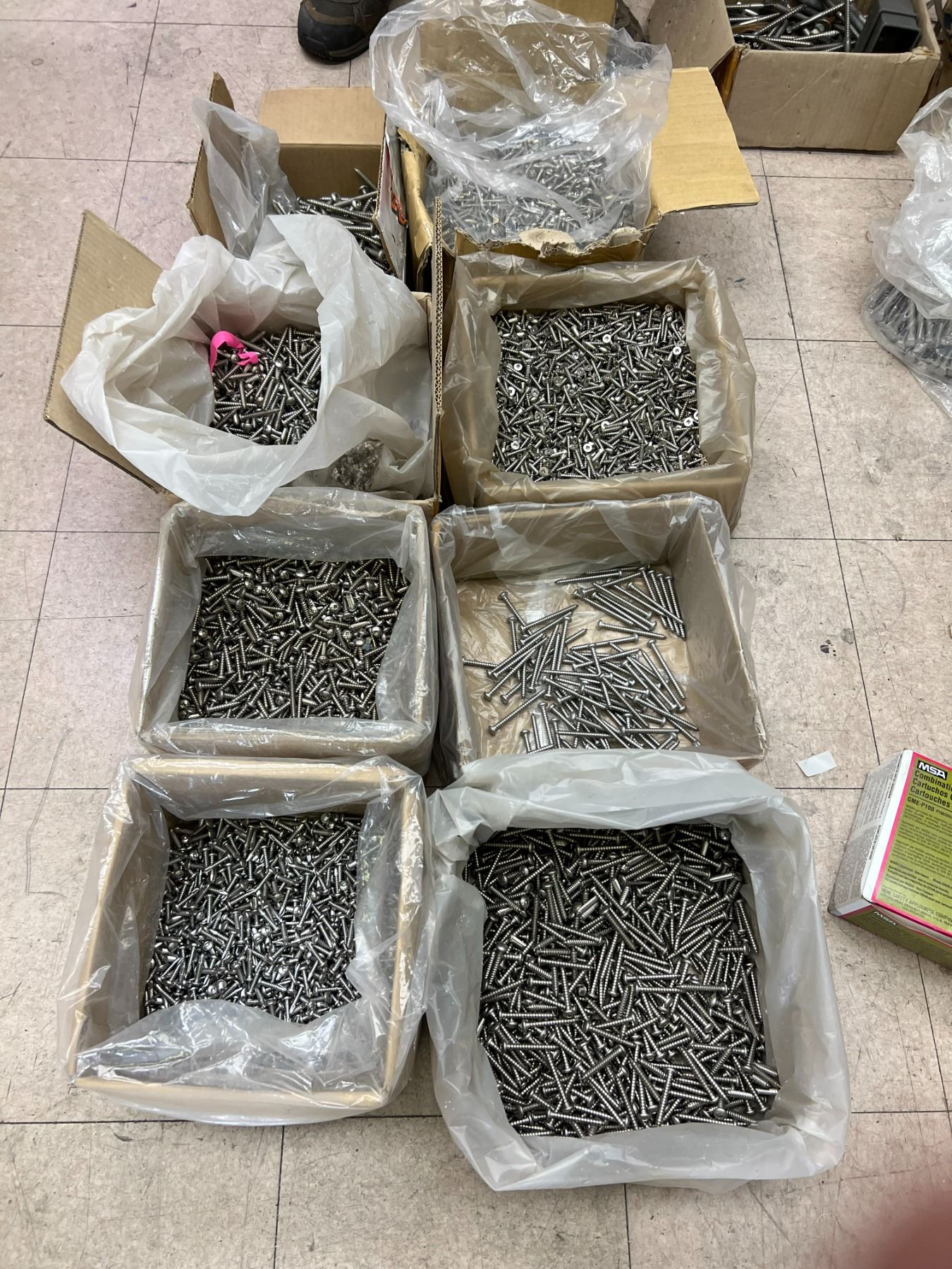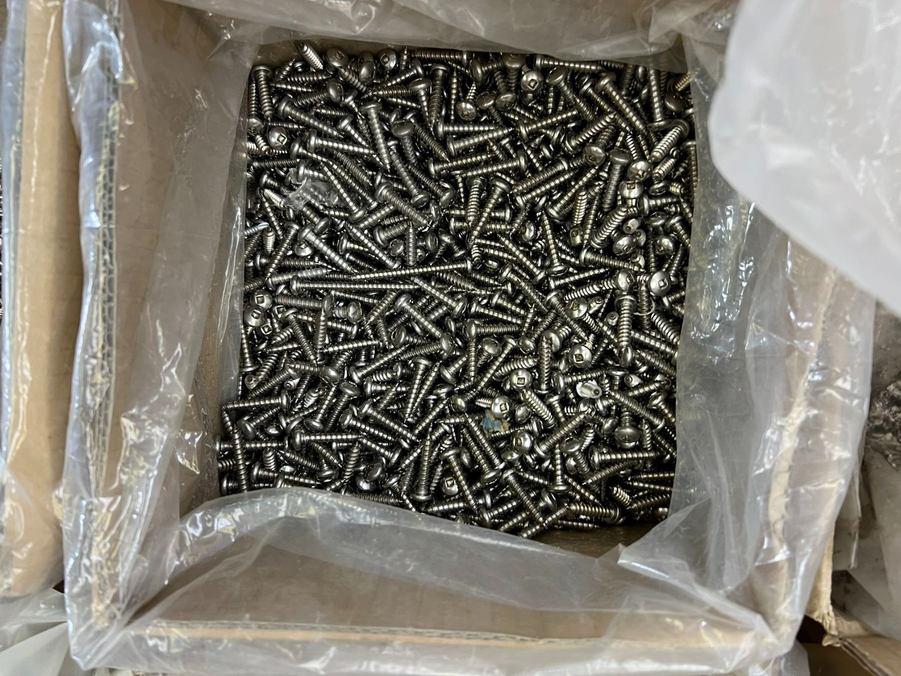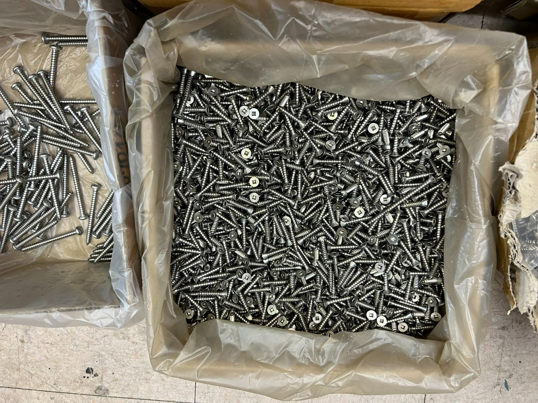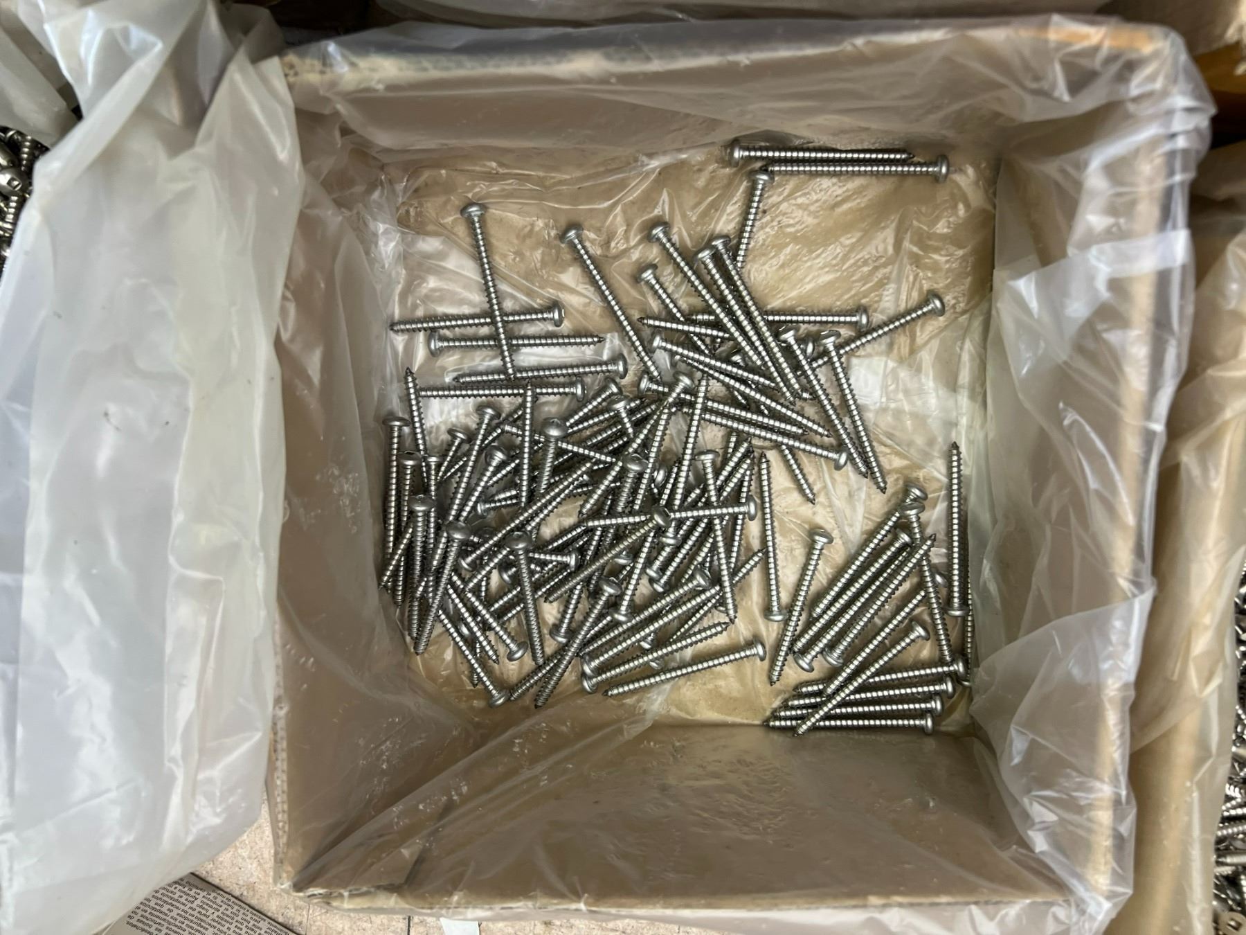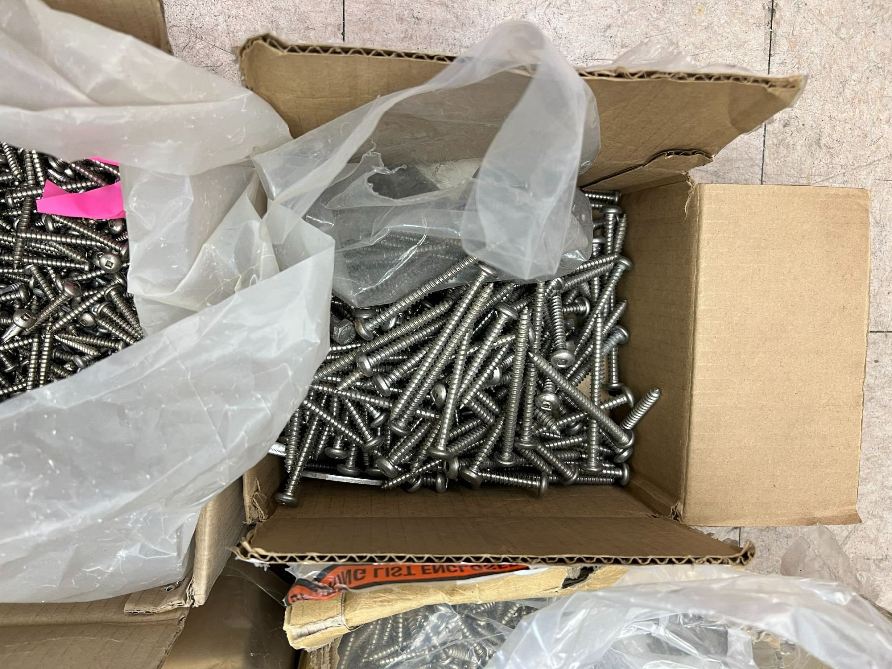 8 PART BOXES STAINLESS STEEL SCREWS (10 X 1 1/4, 14 X 4, 12 X 1 1/4, 14 X 2, 14 X 3, 14 X 1 1/4, 14 X 2 & 12 X 1)