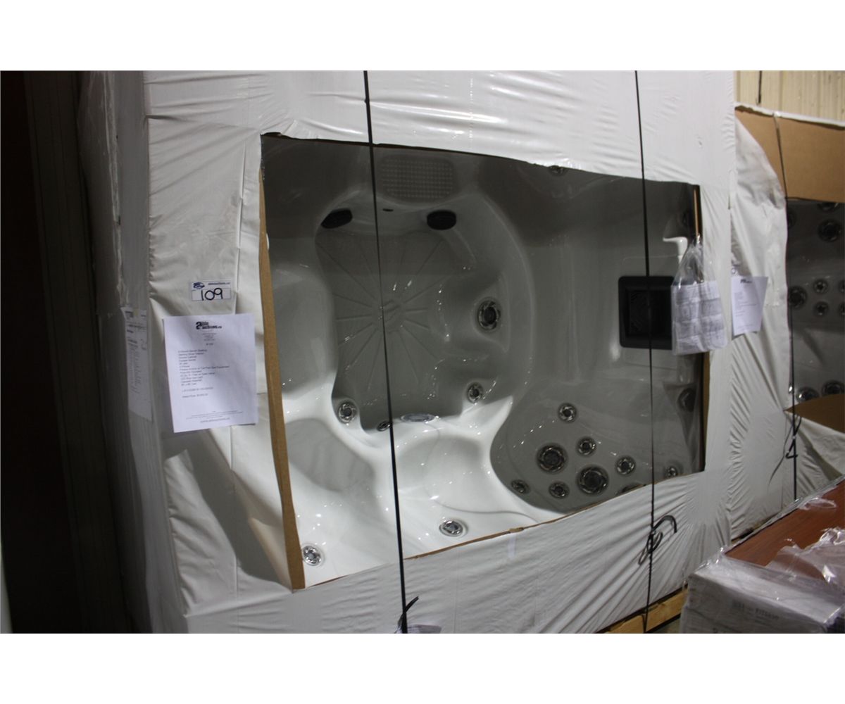 8 PERSON, BENCH SEATING SAHARA, SMOKE CABINET, 61 JETS, 4 PILLOWS, FITNESS ANCHOR W/CAL FLEX SPA EQUIPMENT, OZONATOR, 50SQFT FILTER W/GATE VALVE, LED BLUE SPA LIGHT 8FTX8FT CABINET L-S12-ES861B-12S-000333