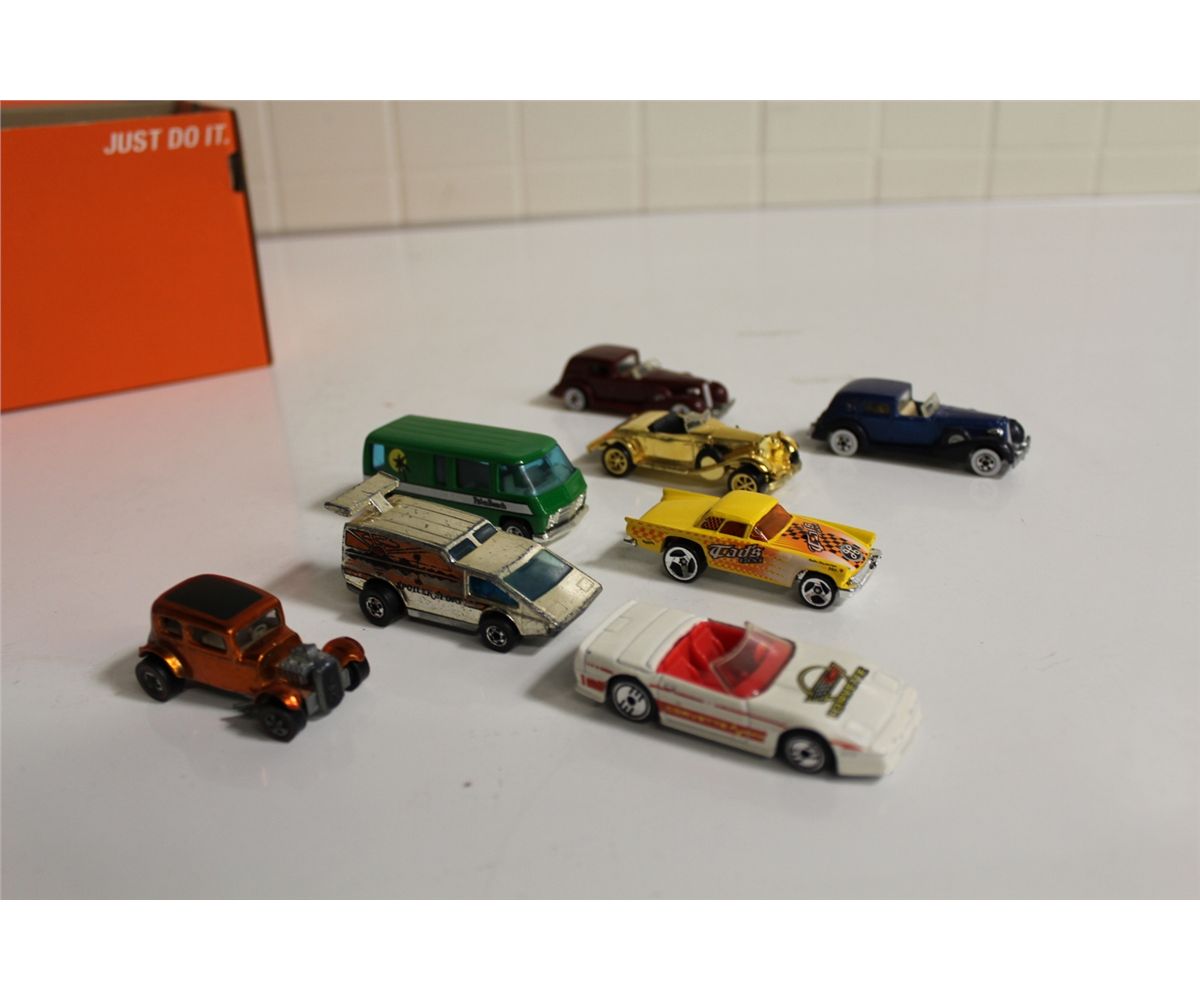 8 VINTAGE 1960'S-80'S HOT WHEELS INCLUDING 1968 CLASSIC 32 FORD VICKY, 1976 GMC MOTOR HOME & SPOILER SPORT AND MORE!