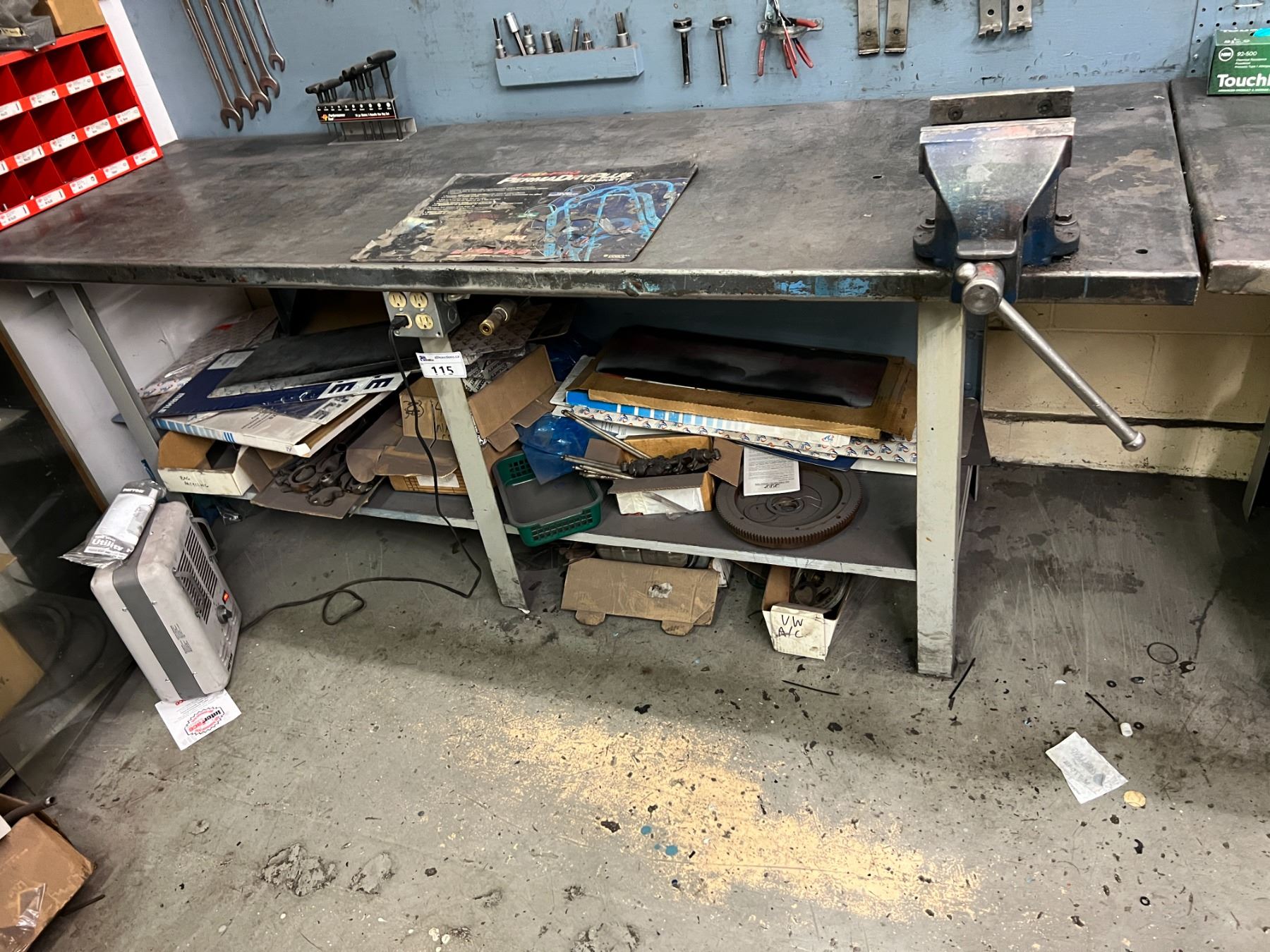 8' X 32" METAL WORK BENCH WITH 5' VICE