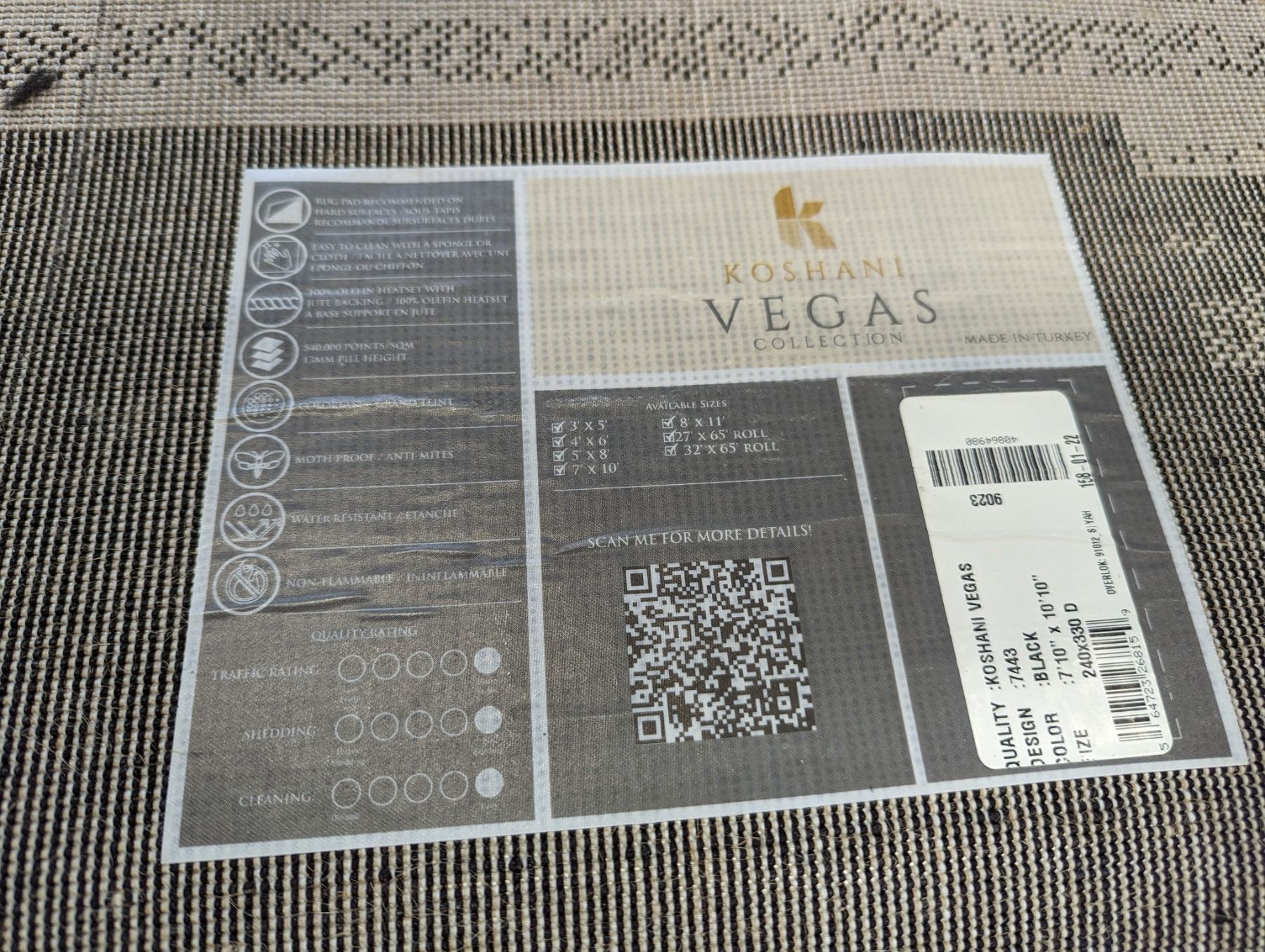 8'X11' AREA RUG, SUNSHINE RUG INC, VEGAS 6148 GREY