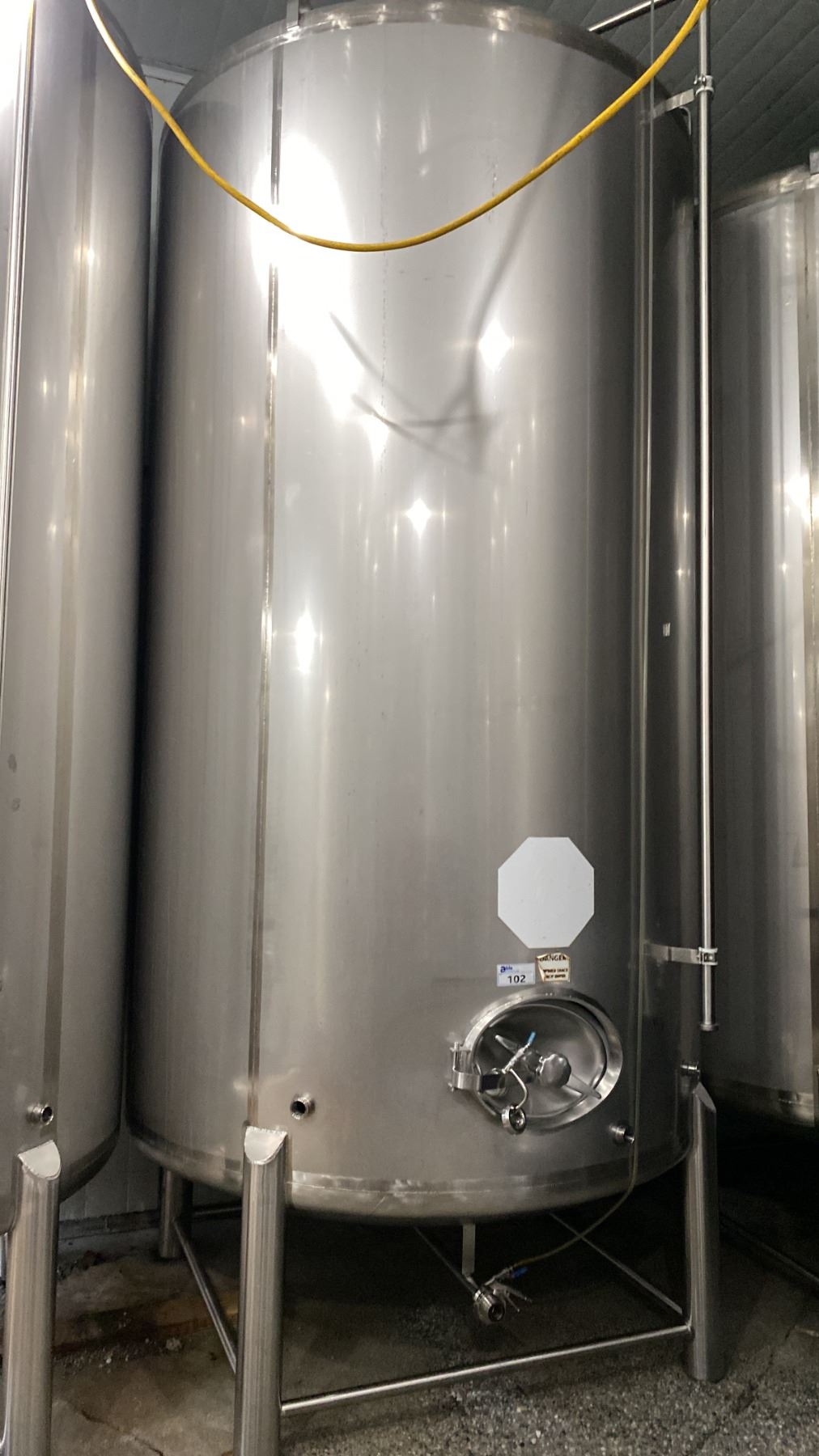 80 HECTOLITER STAINLESS STEEL FERMENTATION VESSEL - APPROX 6'D X 12'H FEET *BUYER WILL REQUIRE ANY TOOLS/EQUIPMENT AND HELP NECESSARY FOR REMOVAL* *REQUIRES HIAB/CRANE FOR REMOVAL*