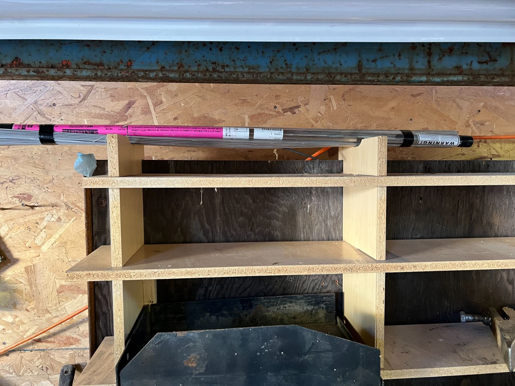 80" LONG X 32" METAL WORK BENCH INCLUDES CONTENTS (4" VICE, WELDING RODS, SMALL GRINDER, WELDING