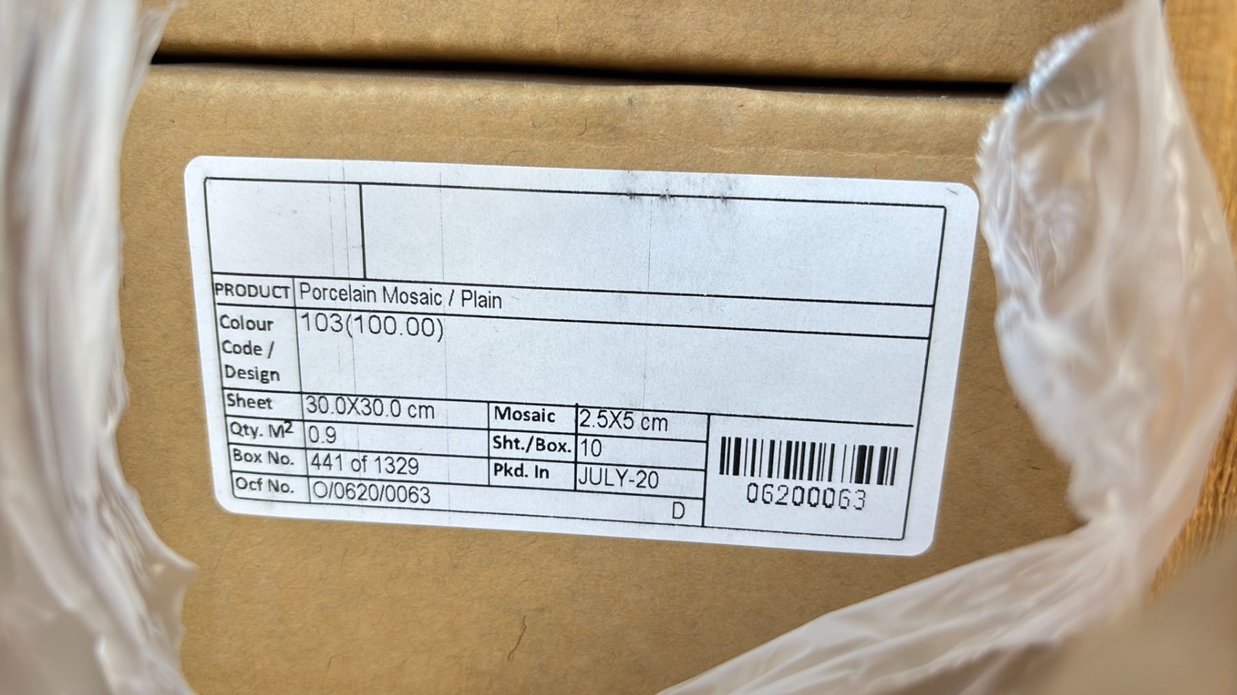 810 SQ FT OF 30CM X 30CM PORCELAIN MOSAIC/ PLAIN TILE APPROX. 10 SQ FT PER BOX 81 BOXES 810 SQ FT TOTAL *MUST TAKE ALL ON PALLET*