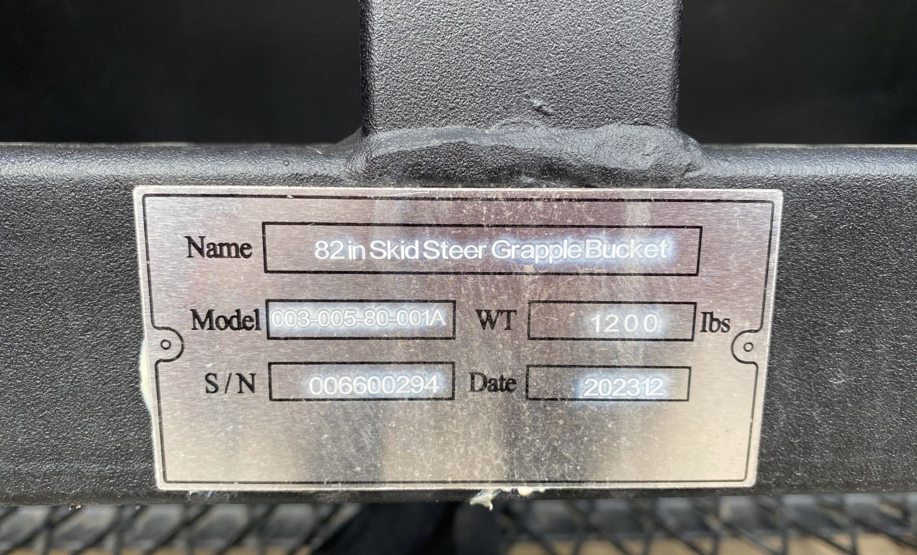 82" SKID STEER GRAPPLE BUCKET ATTACHMENT
