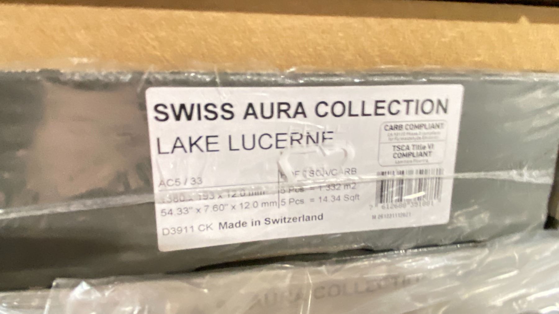 860.4 SQ FT OF EURO ORIGINAL SWISS AURA COLLECTION LAKELUCERNE 12MM GLUELESS LAMINATE FLOORING 14.34SQFT PER BOX, 60 BOXES, 860.4 SQFT TOTAL