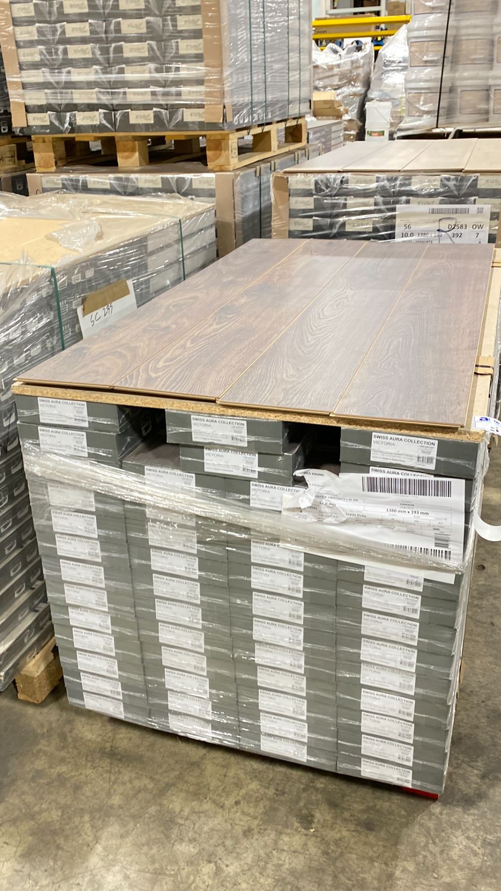 860.4 SQ FT OF SWISS AURA COLLECTION VICTORIA 12MM GLUELESS LAMINATE FLOORING 14.34SQFT PER BOX, 60 BOXES, 860.4 SQ FT TOTAL *MUST TAKE ALL ON PALLET*