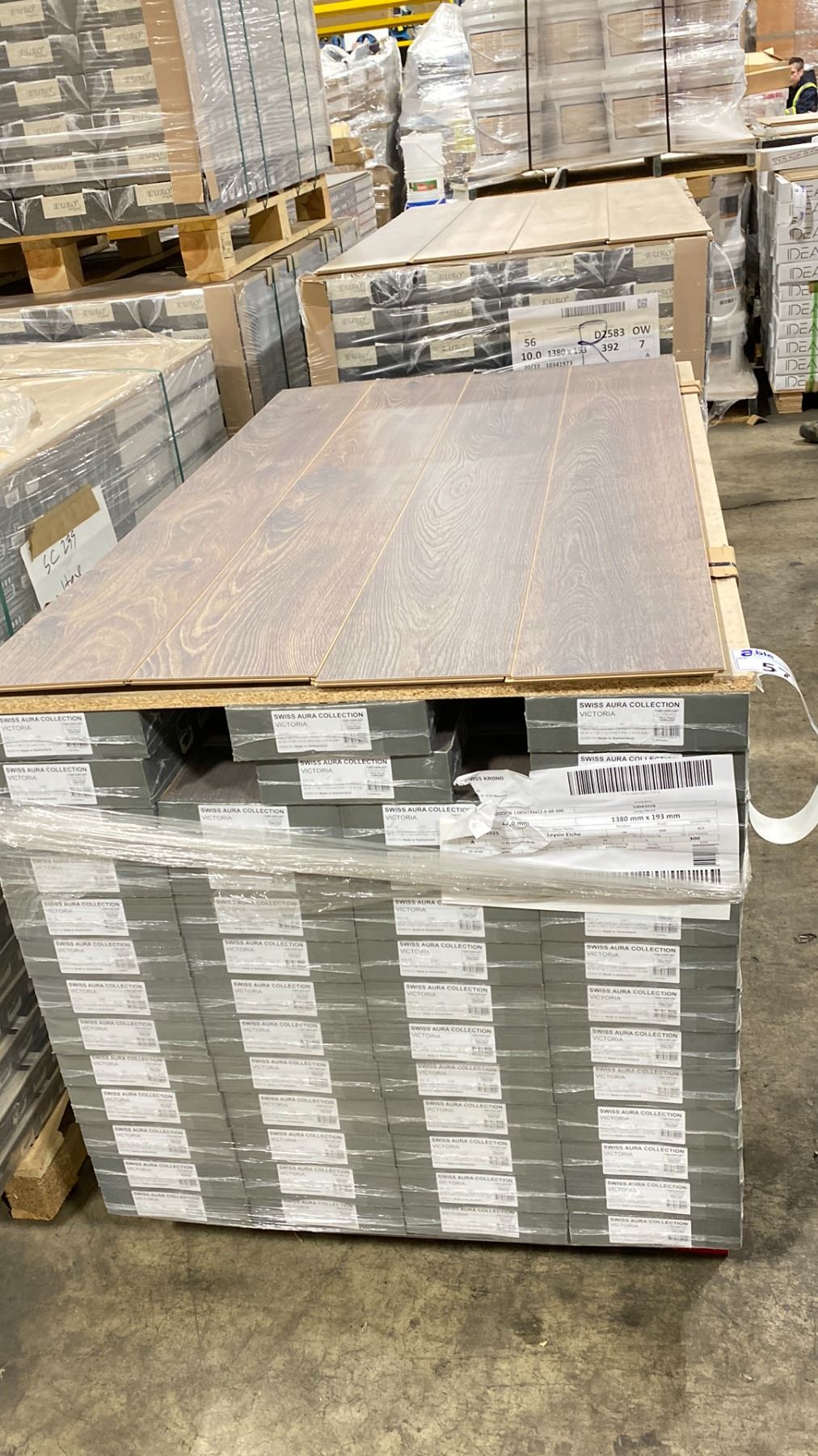 860.4 SQ FT OF SWISS AURA COLLECTION VICTORIA 12MM GLUELESS LAMINATE FLOORING 14.34SQFT PER BOX, 60 BOXES, 860.4 SQ FT TOTAL *MUST TAKE ALL ON PALLET*