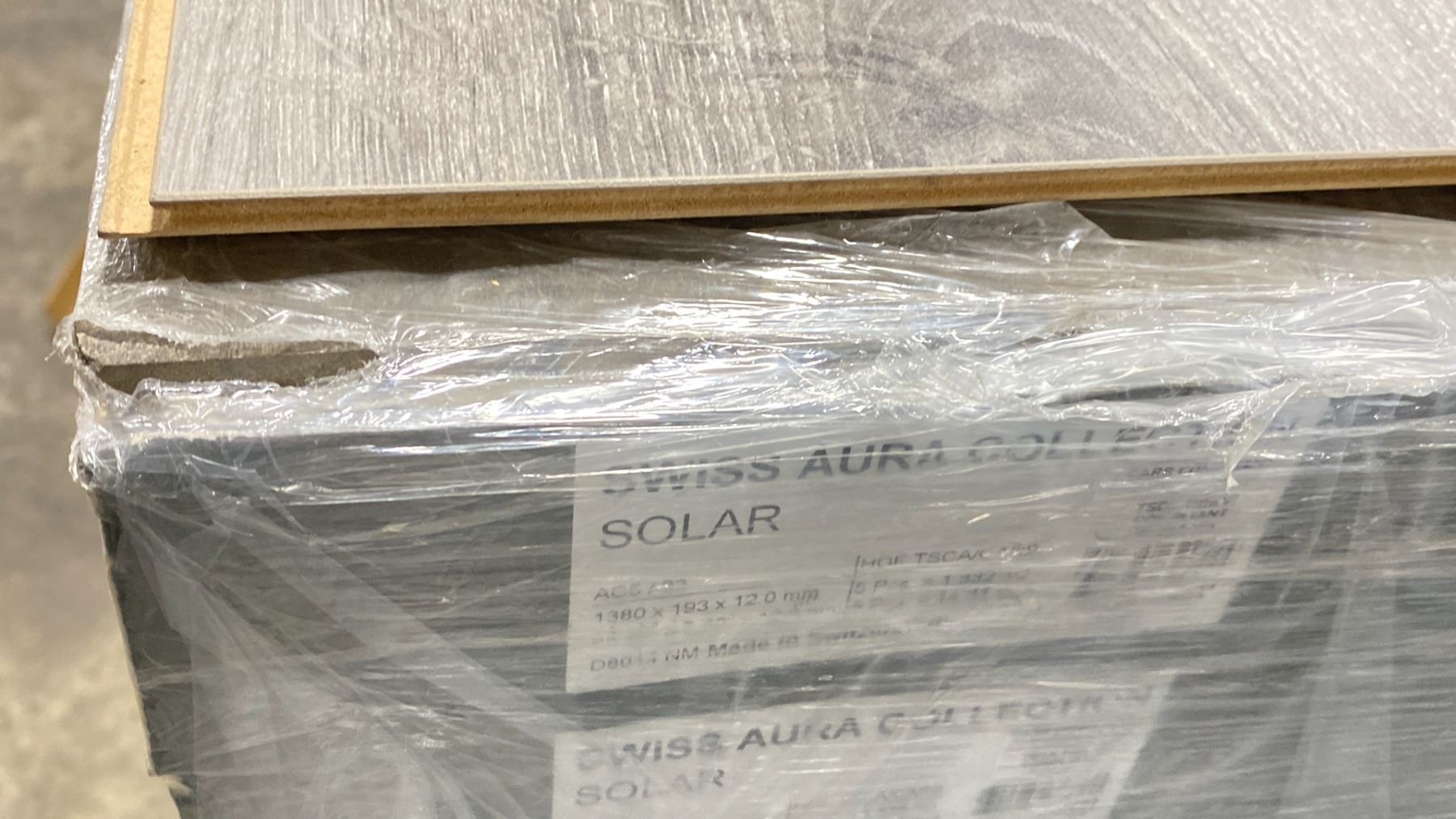 860.4SQ FT OF EURO ORIGINAL SWISS AURA COLLECTION SOLAR 12MM GLUELESS LAMINATE FLOORING 14.34SQFT PER BOX, 60 BOXES, 860.4 SQFT TOTAL *MUST TAKE ALL ON PALLET*