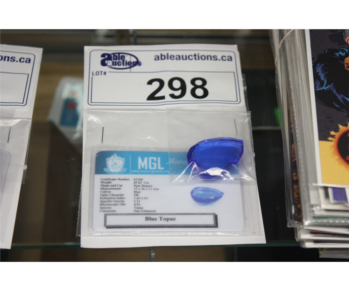 87.65CARAT PEAR SHAPED BLUE TOPAZ - COMES WITH CERTIFICATE CARD