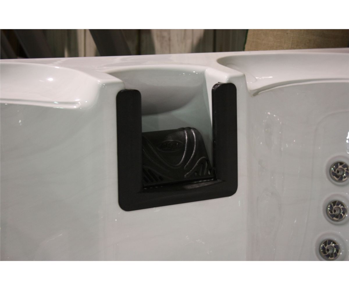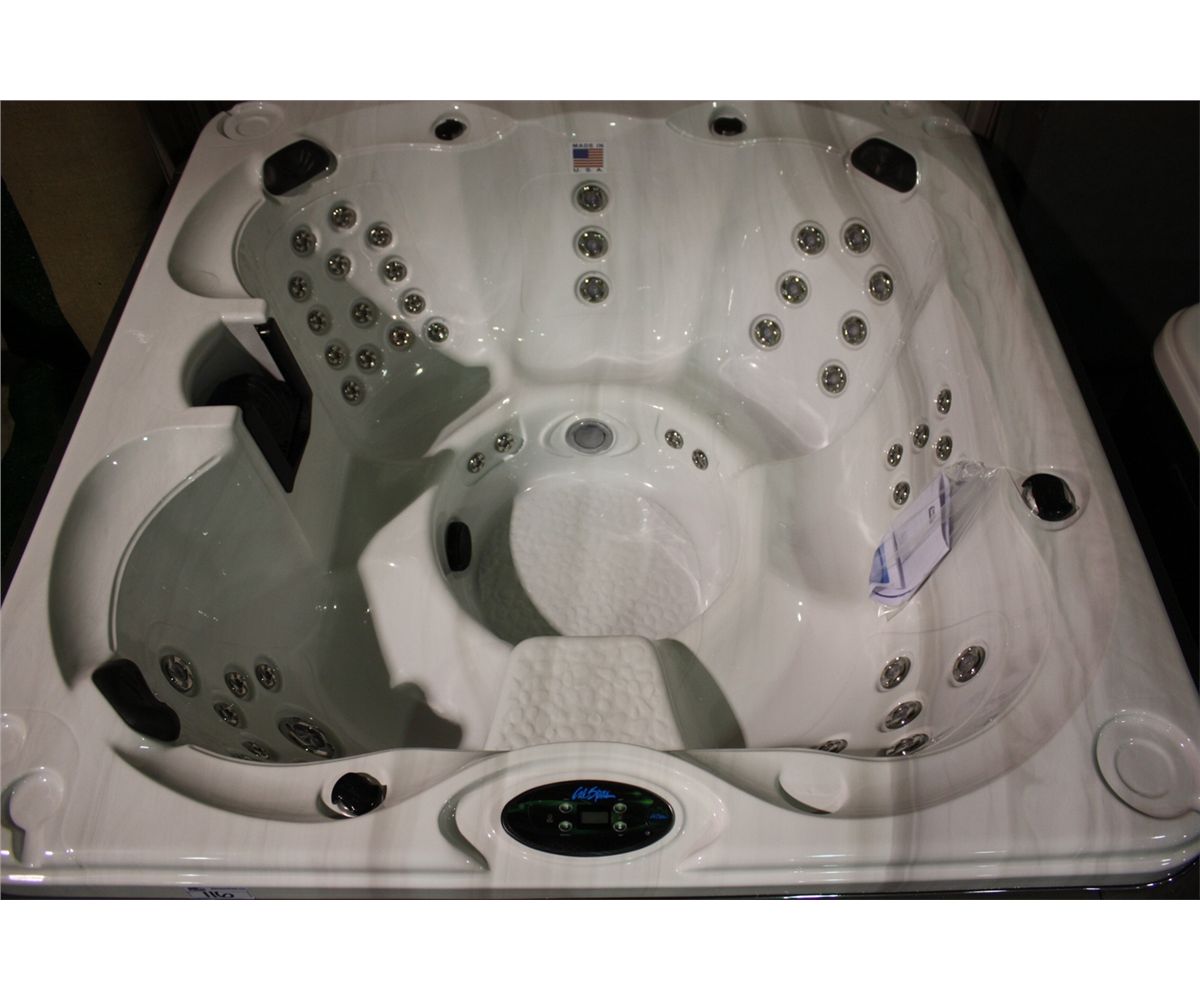 89" X 89" CAL SPAS XTREME SERIES HOT TUB WITH STERLING SILVER INTERIOR AND GREY MIST CABINET. INCLUDES: FAUX WOOD CABINET, WHISPER 5.5 KW HEATER, 50 SS JETS, BENCH SEATING, PURE-SILK OZONATOR AND LED BLUE SPA LIGHT PACKAGE. MOD. M-S13-X750B-13S-000026