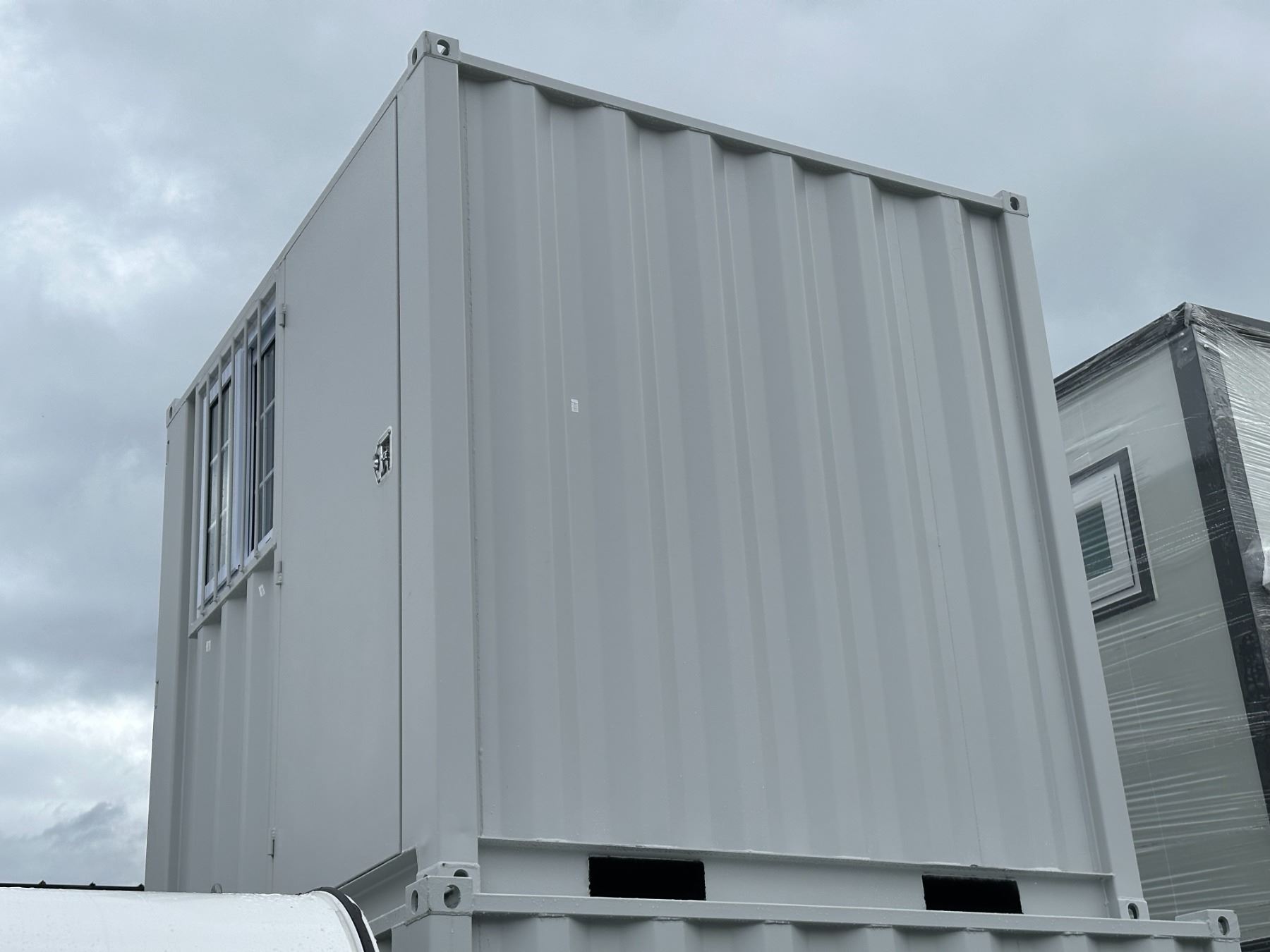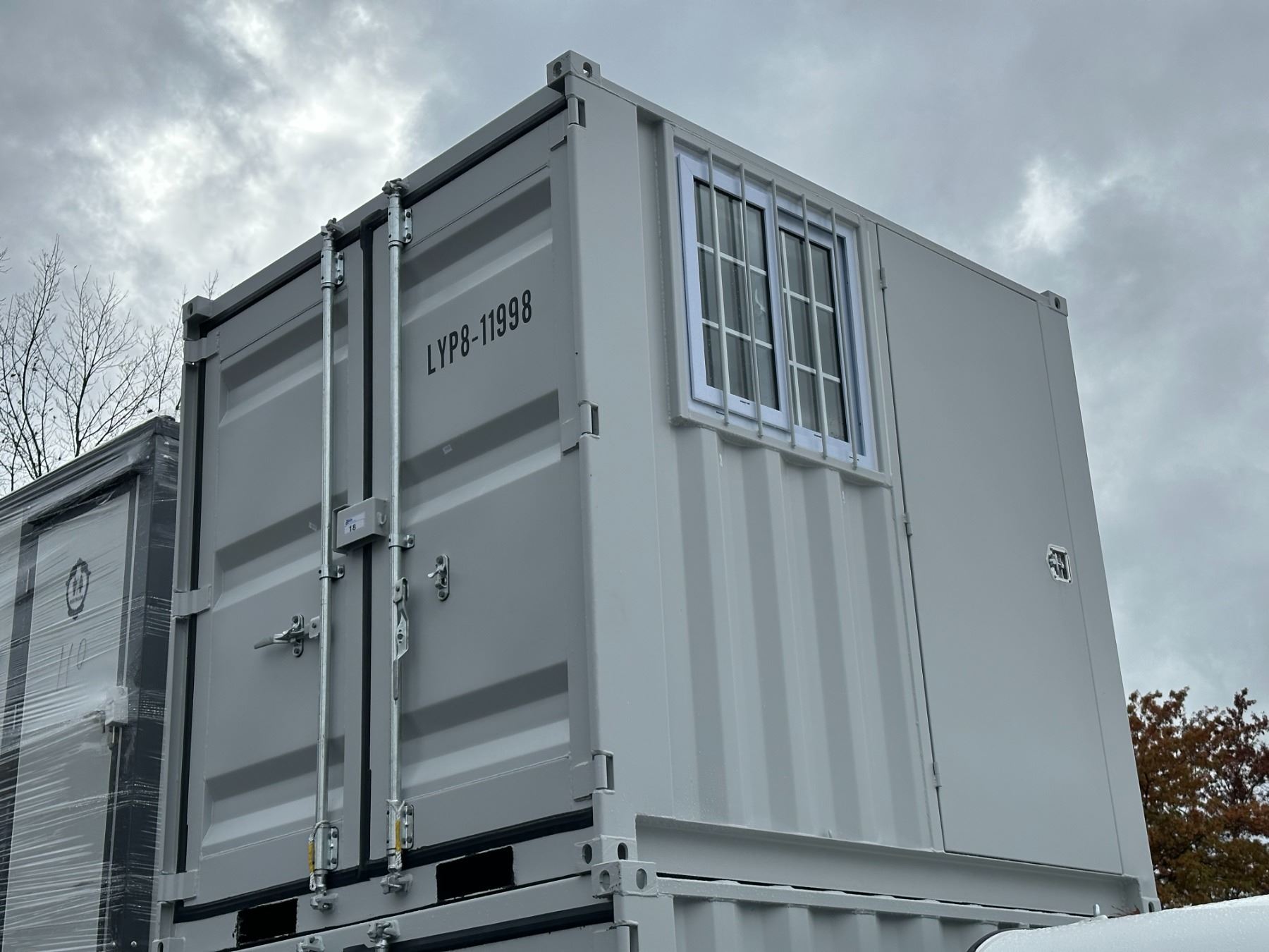 8FT GREY OFFICE STORAGE SHIPPING CONTAINER 98"L X 80"W X 88"H WITH DUAL SWING REAR DOORS WITH CAMS, SIDE MAN DOOR & WINDOW
