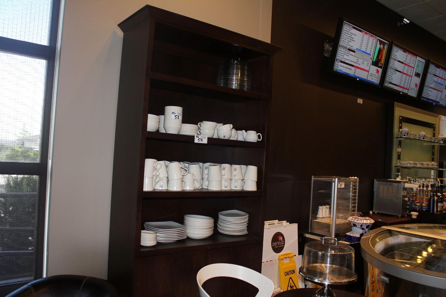 8FT TALL DARK WOOD RETAIL DISPLAY CABINET