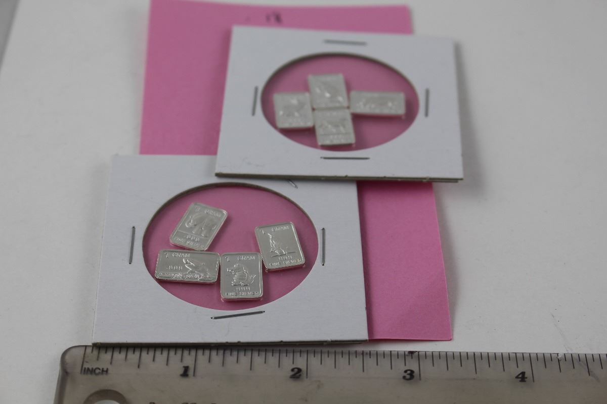 8X .999 FINE SILVER BULLION BARS. VARIOUS ANIMAL MOTIFS, 2016 MINT, LIMITED EDITION, TAX EXEMPT