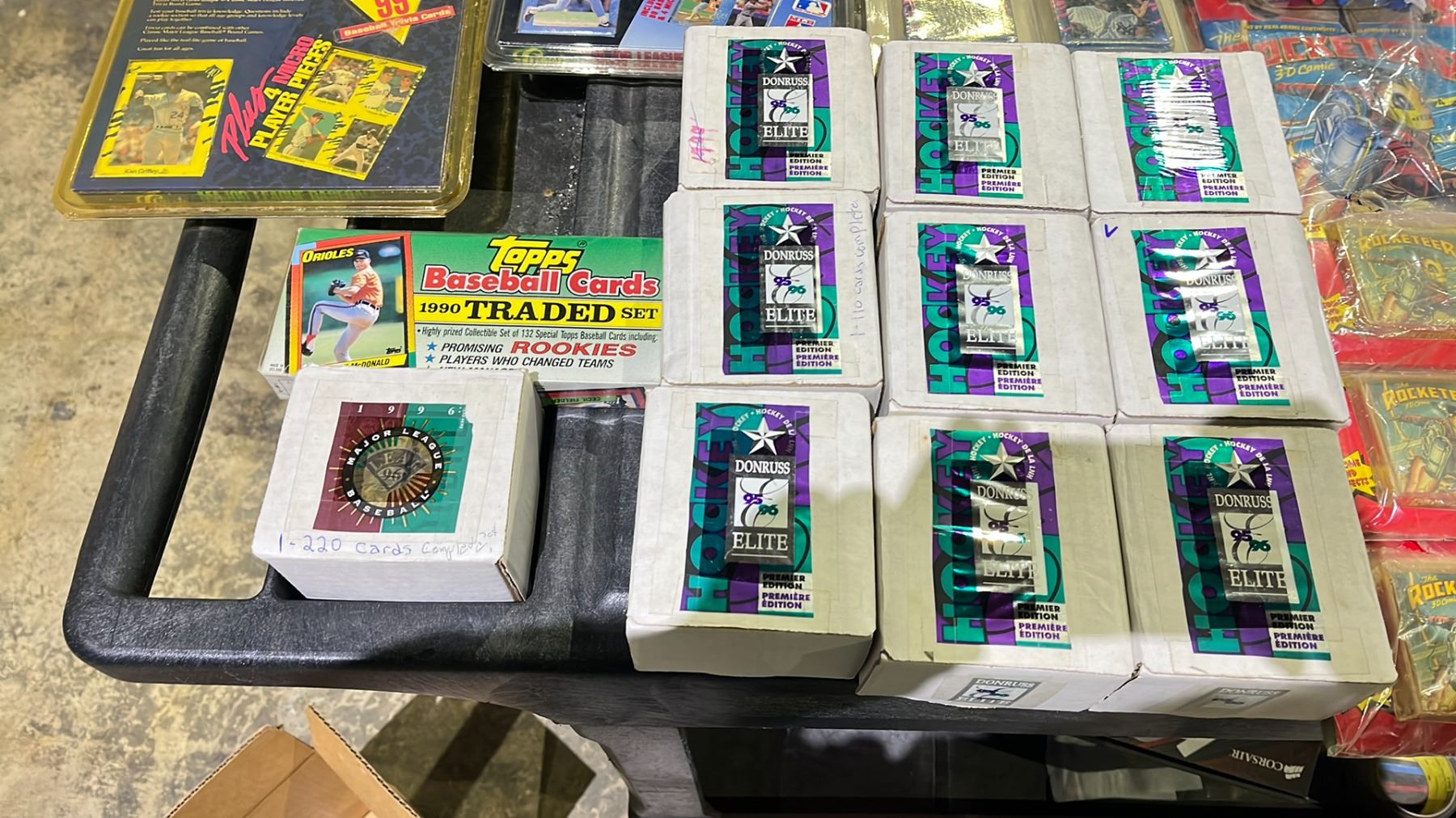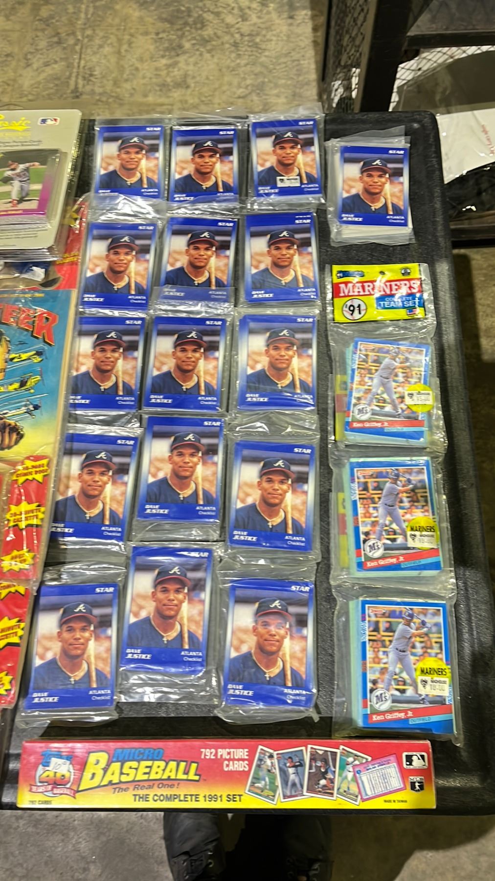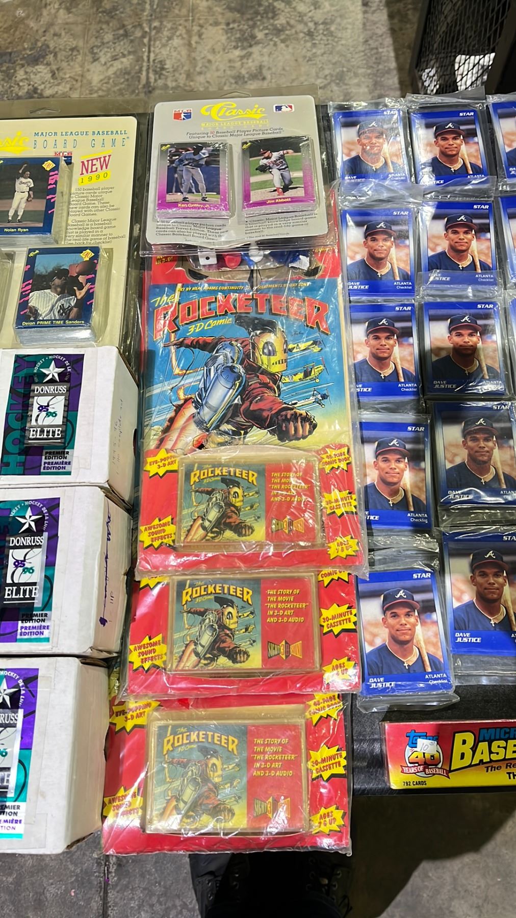 9 1995-1996 DONRUSS ELITE PREMIER EDITION SET, 1-110 CARDS (COMPLETE) 1 1990 CLASSIC BASEBALL BOARD GAME, 150 CARDS (FACTORY SEALED) 1 1990 CLASSIC BASEBALL BOARD GAME, 99 CARDS (FACTORY SEALED) 1 1991 CLASSIC BASEBALL BOARD GAME, SERIES I, 99 CARDS (FACTORY SEALED) 3 ROCKETEER 3D COMIC, TAPE PLUS 3D GLASSES 1 1990 CLASSIC BASEBALL BOARD GAME, 50 CARDS (FACTORY SEALED) 1 1996 LEAF BASEBALL SET, 1-220 CARDS (COMPLETE) 1 1990 TOPPS TRADED BASEBALL SET, 132 CARDS (FACTORY SEALED) 1 1991 TOPPS BASEBALL MICRO SET, 792 CARDS (FACTORY SEALED) 17 1990 THE STAR CO., DAVE JUSTICE, PACKS 3 1991 DONRUSS MARINERS TEAM SETS