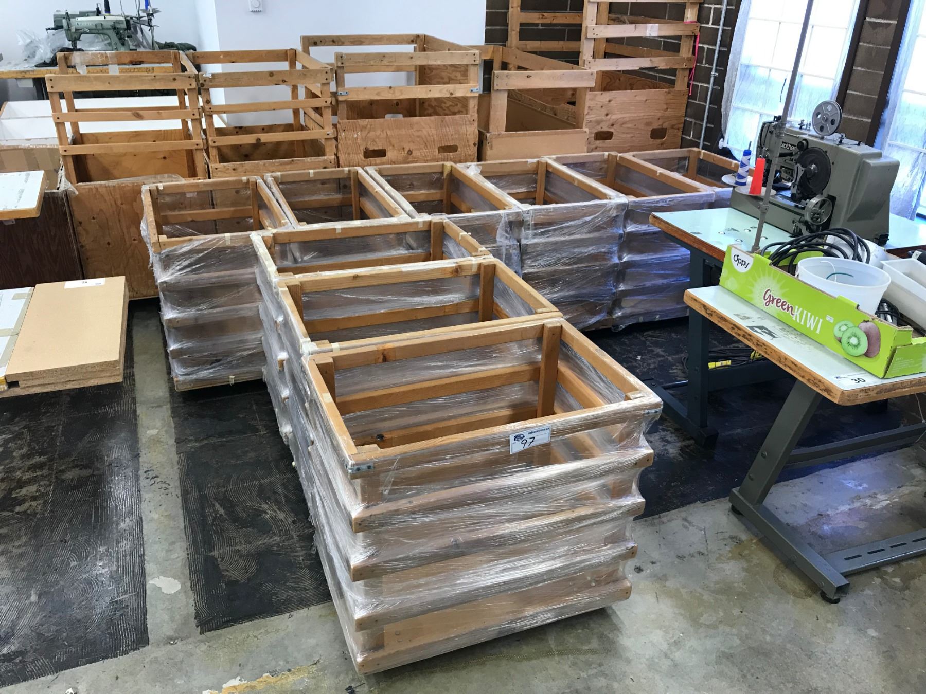 9 30" X 20" WOODEN MOBILE 4 WHEEL BIN CARTS