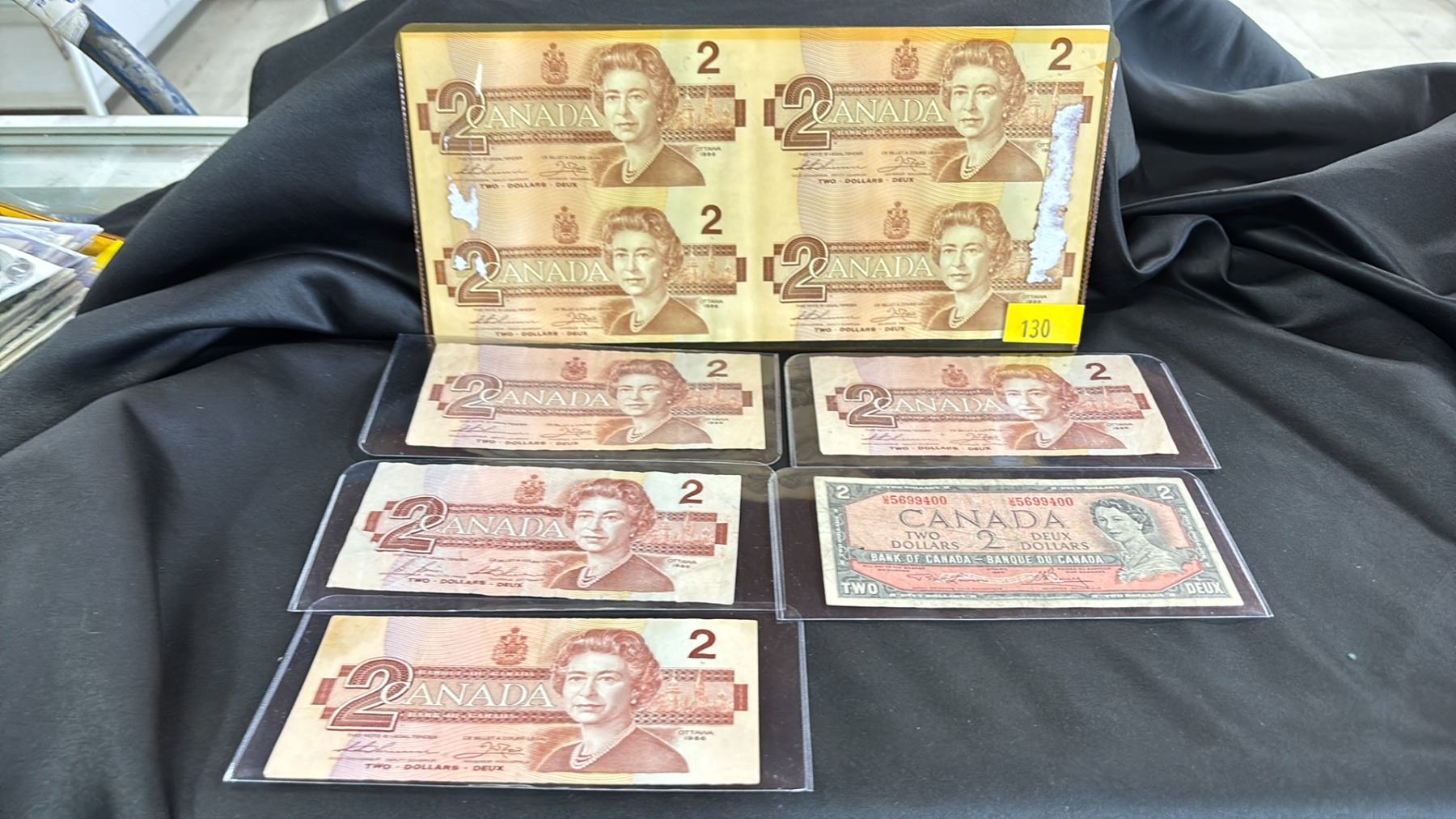 9 ASSORTED CANADA 2 DOLLAR BANK NOTES