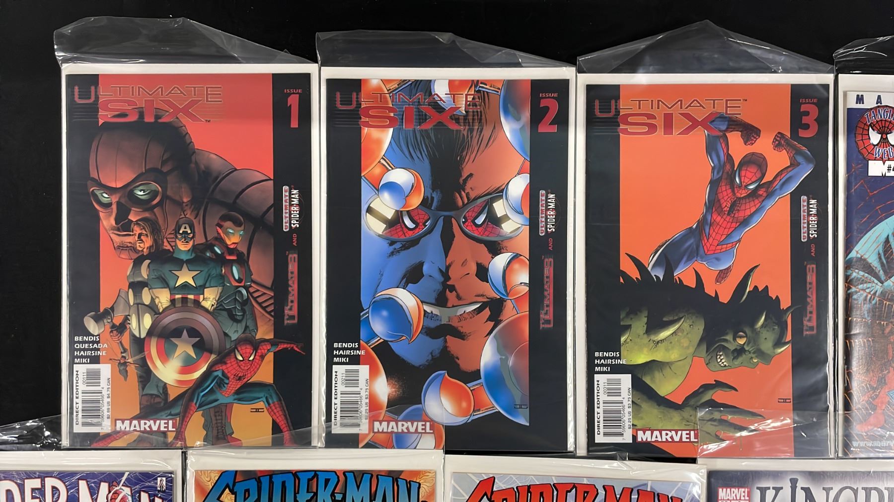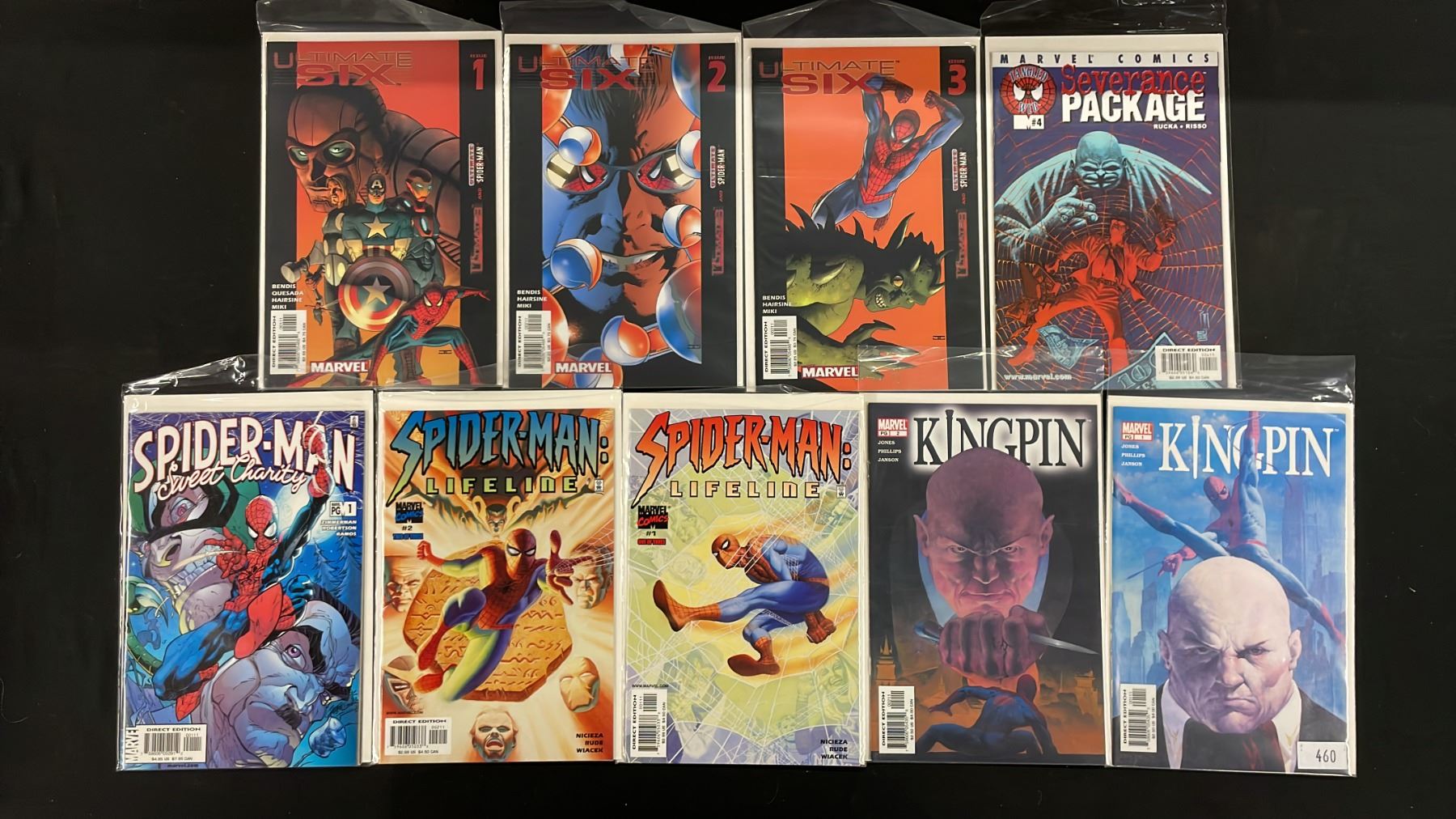 (9) ASSORTED MARVEL COMIC BOOKS; KINGPIN #1 & 2, SPIDER-MAN: LIFELINE #1 & 2, SPIDER-MAN SWEET CHARITY #1, SEVERANCE PACKAGE #4 & ULTIMATE SIX #1-3