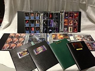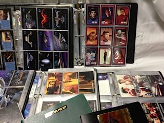 9  BINDERS OF STAR TREK TRADING CARD SETS VARIOUS SEASONS INC. VOYAGER, DS9, TOS, POG SET AND MORE