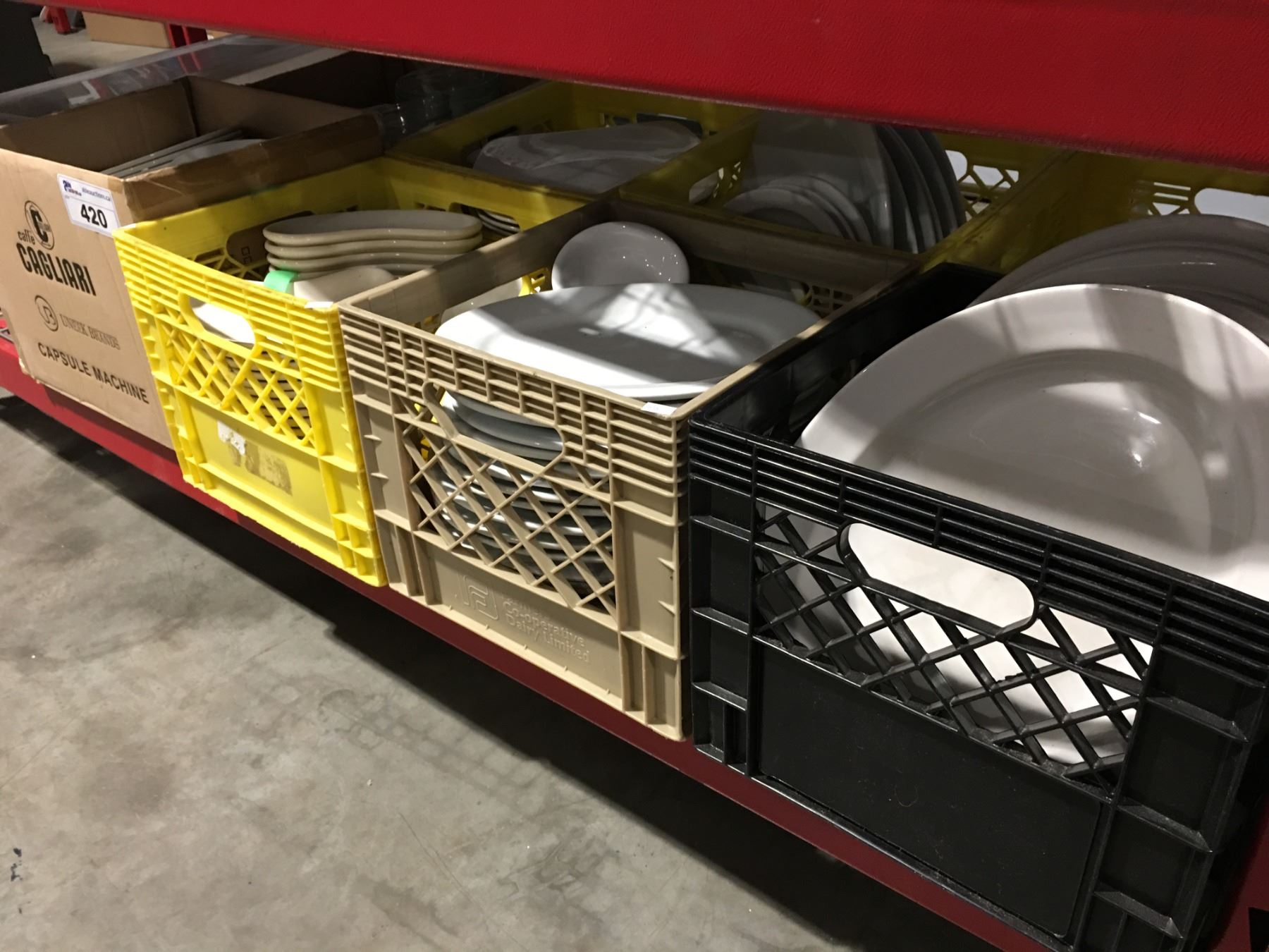 9 BOXES OF ASSTD WHITE CERAMIC DINNERWARE - PLATES/BOWLS ETC.