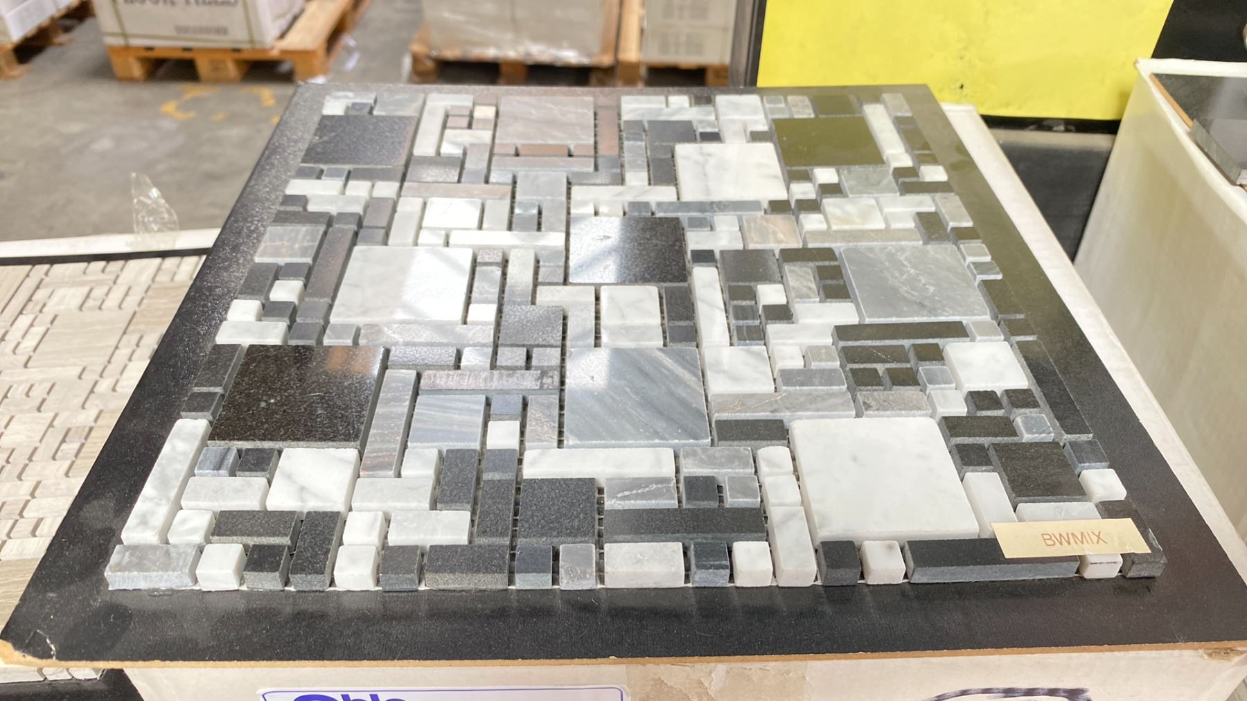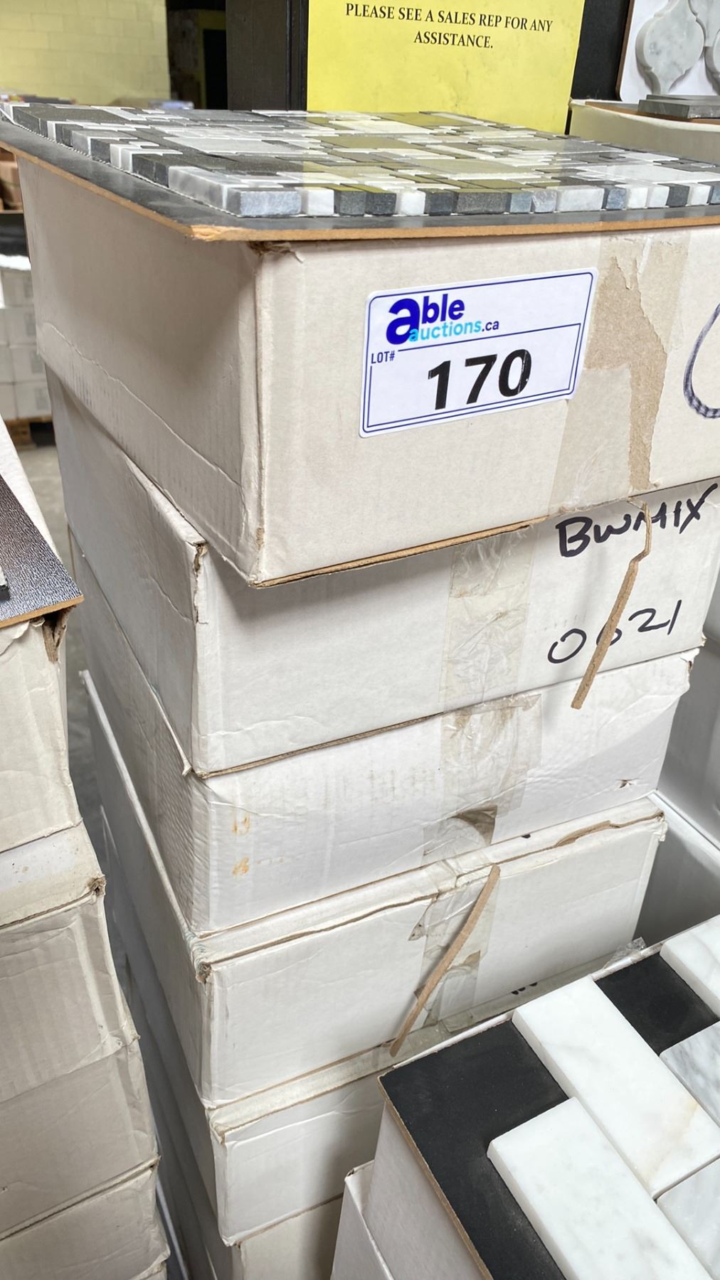 9 BOXES OF MARBLE MOSAIC TILE IN BWMIX 15 X 1SQ.FT. SHEETS PER BOX APPROX 135SQ.FT. TOTAL