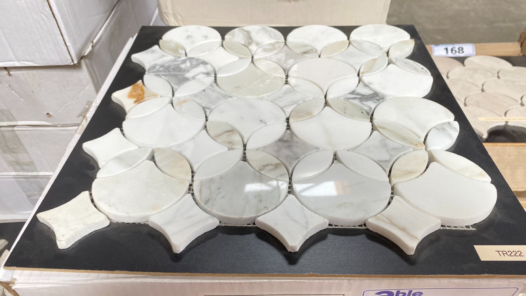 9 BOXES OF MARBLE MOSAIC TILE IN TR222 11 X 1SQ.FT. SHEETS PER BOX APPROX 99SQ.FT. TOTAL