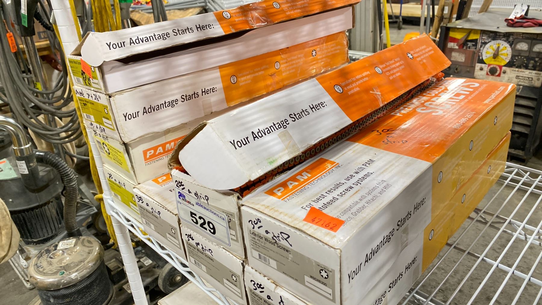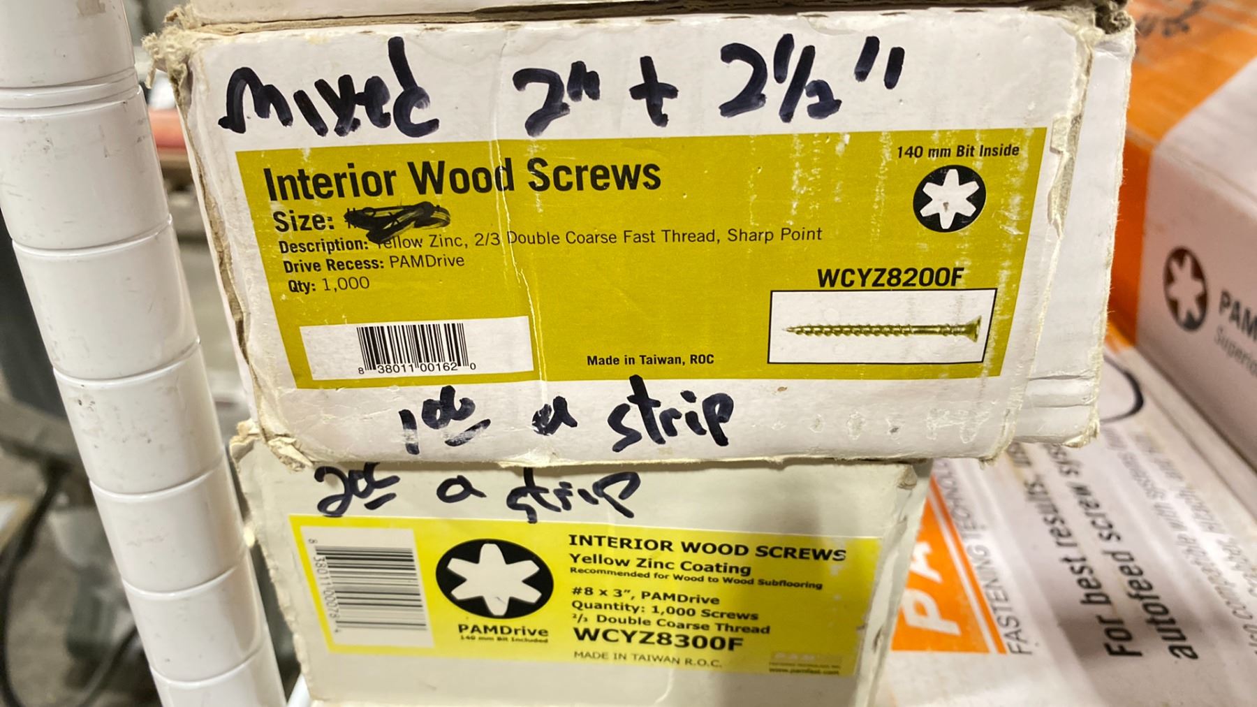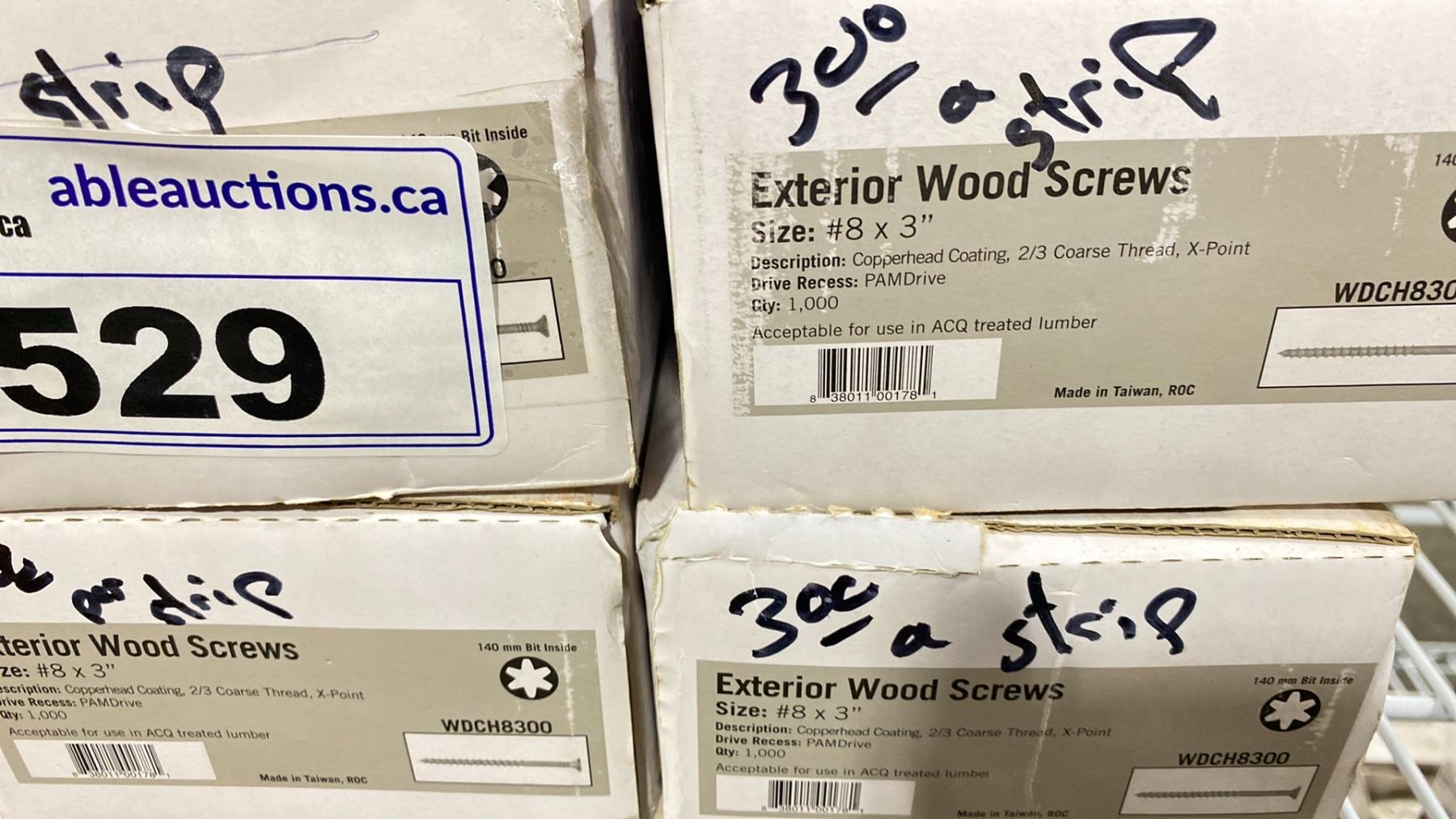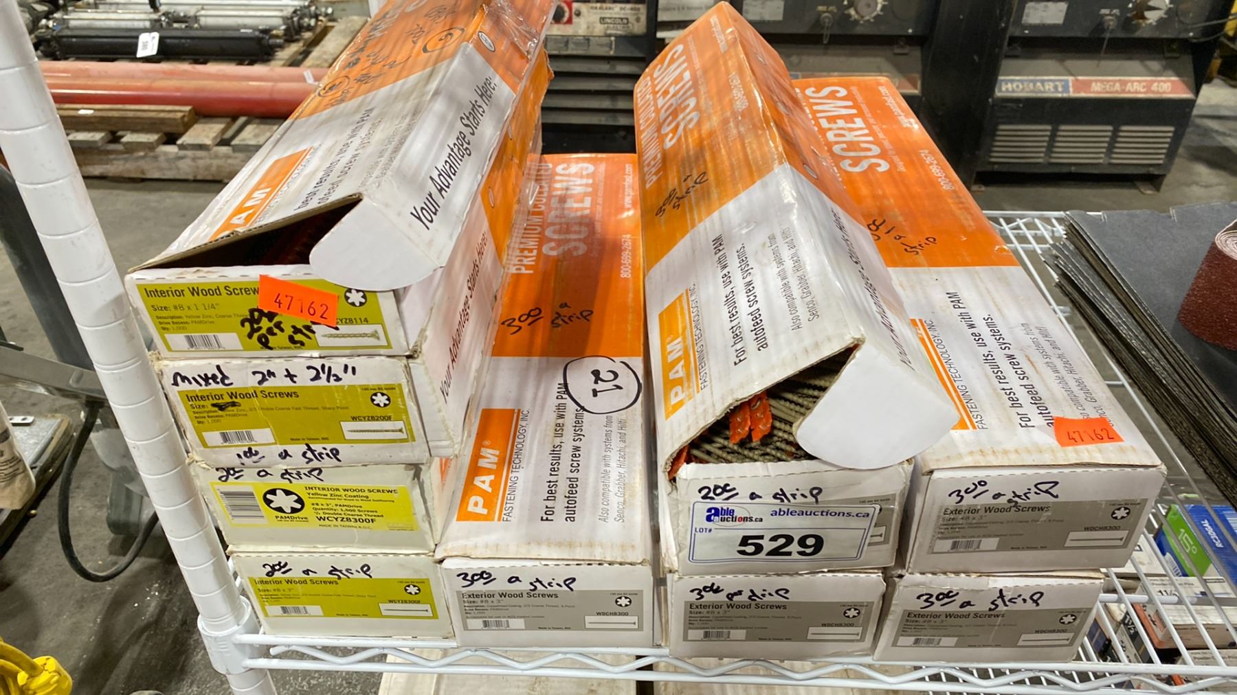 9 BOXES OF PAM AUTOFEED SCREW STRIPS (INTERIOR AND EXTERIOR) WOOD SCREWS