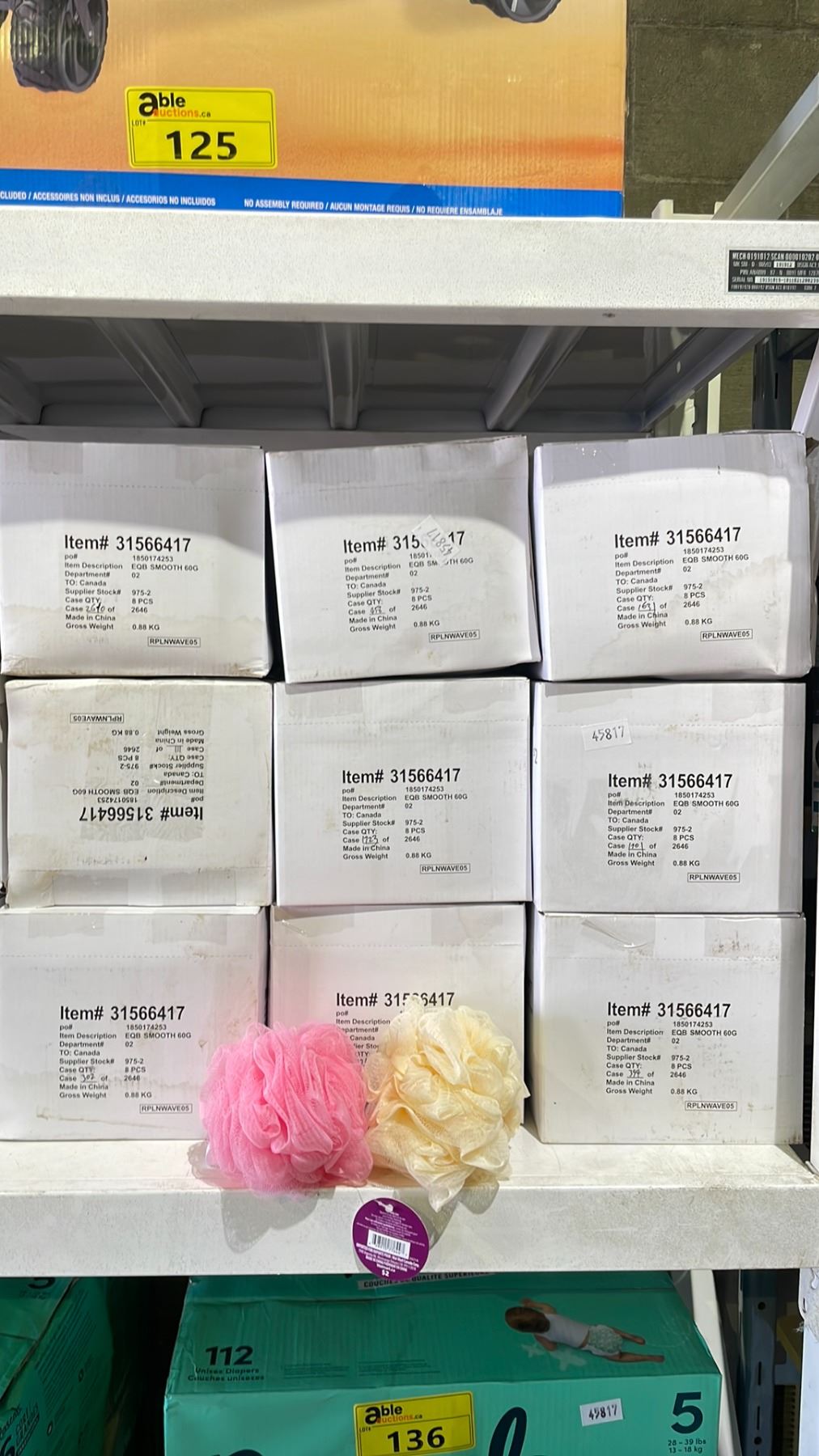 9 CASES OF 8 EQUATE BEAUTY GENTLE SHOWER POUFS