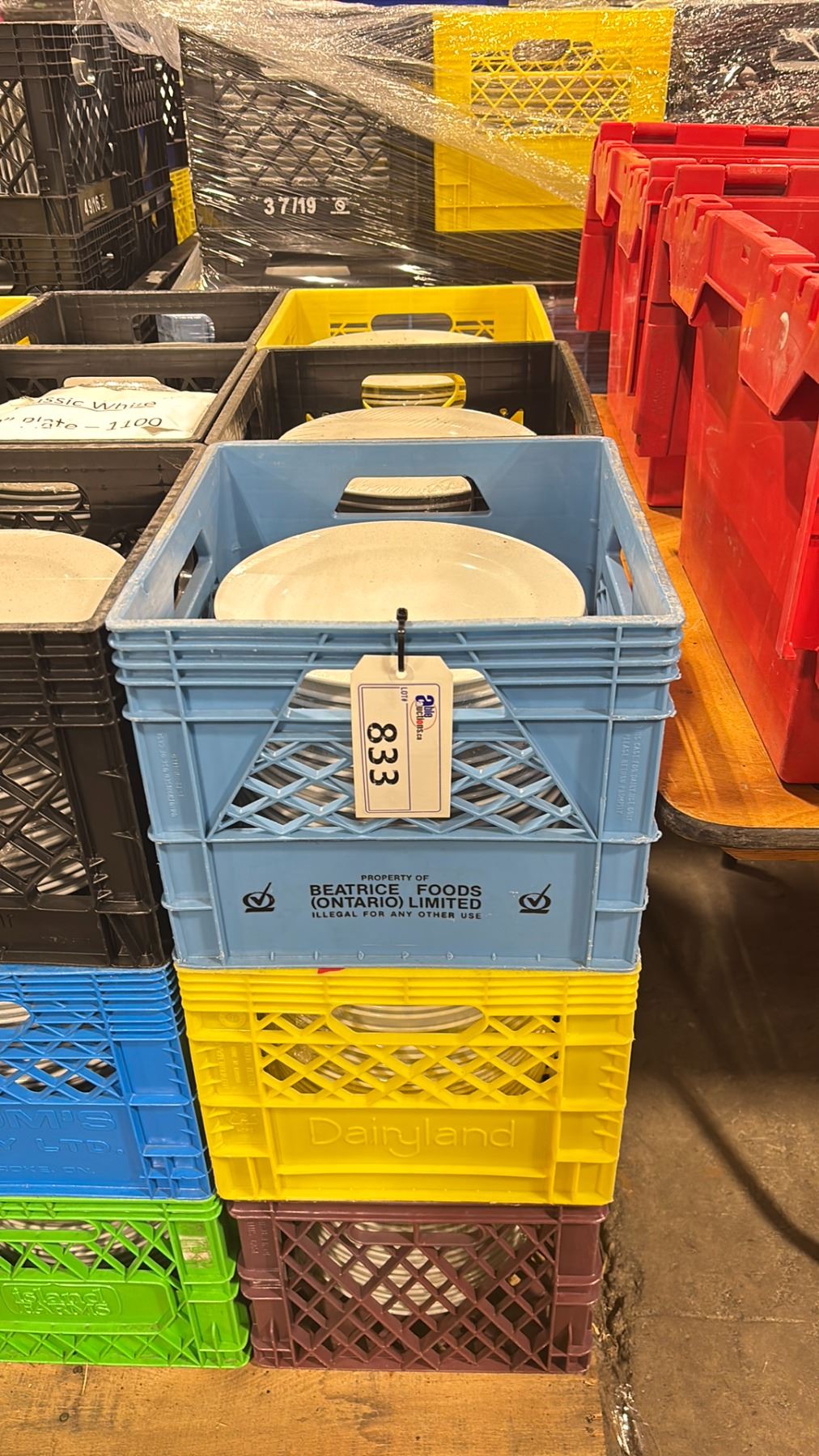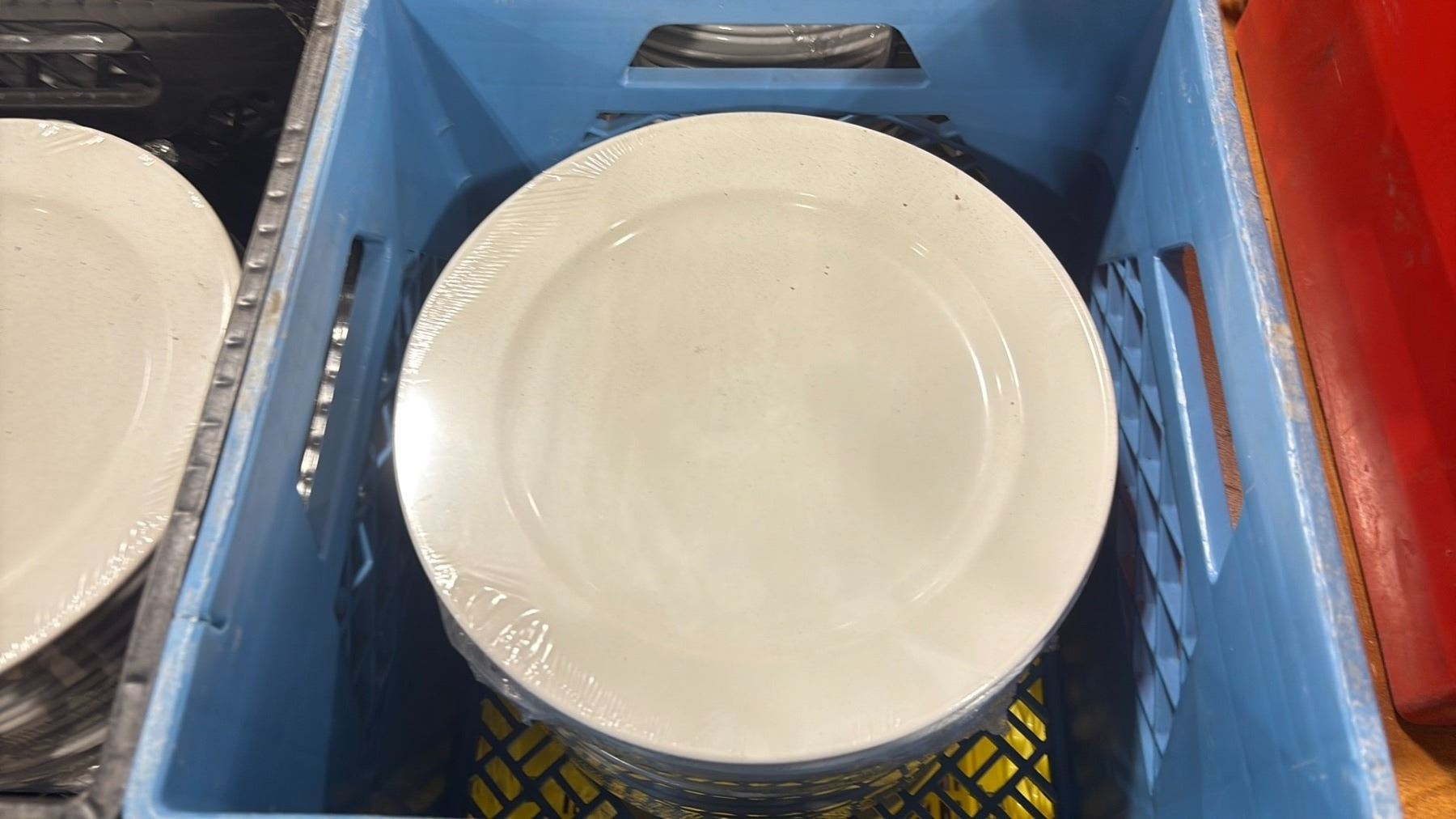 9 CRATES OF WHITE 10" COMMERCIAL RESTAURANT DINNER PLATES *CRATES INCLUDED* ( APPROX. 20 PLATES PER CRATE, 180 PLATES TOTAL )