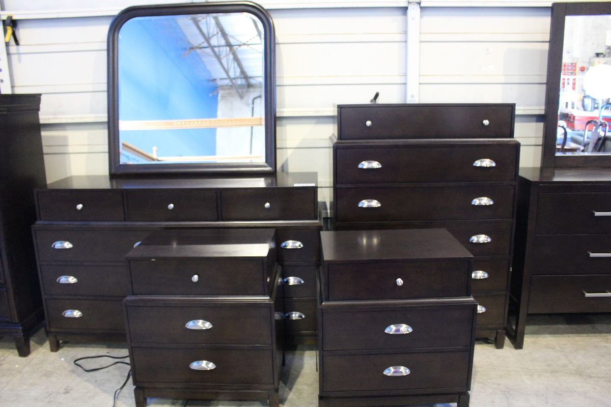 9 DRAWER DRESSER WITH MIRROR, 6 DRAWER HIGHBOY, AND 2 NIGHT STANDS