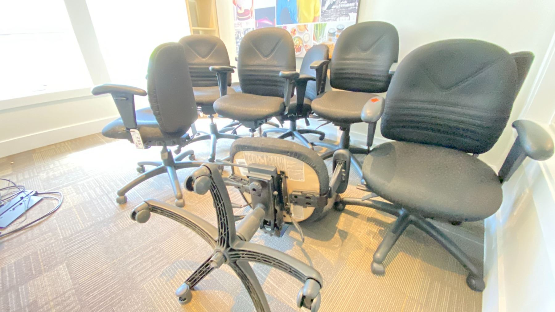 9 GLOBAL FULL FUNCTION MATCHING ROLLING OFFICE TASK CHAIRS LOCATED IN HOUSE