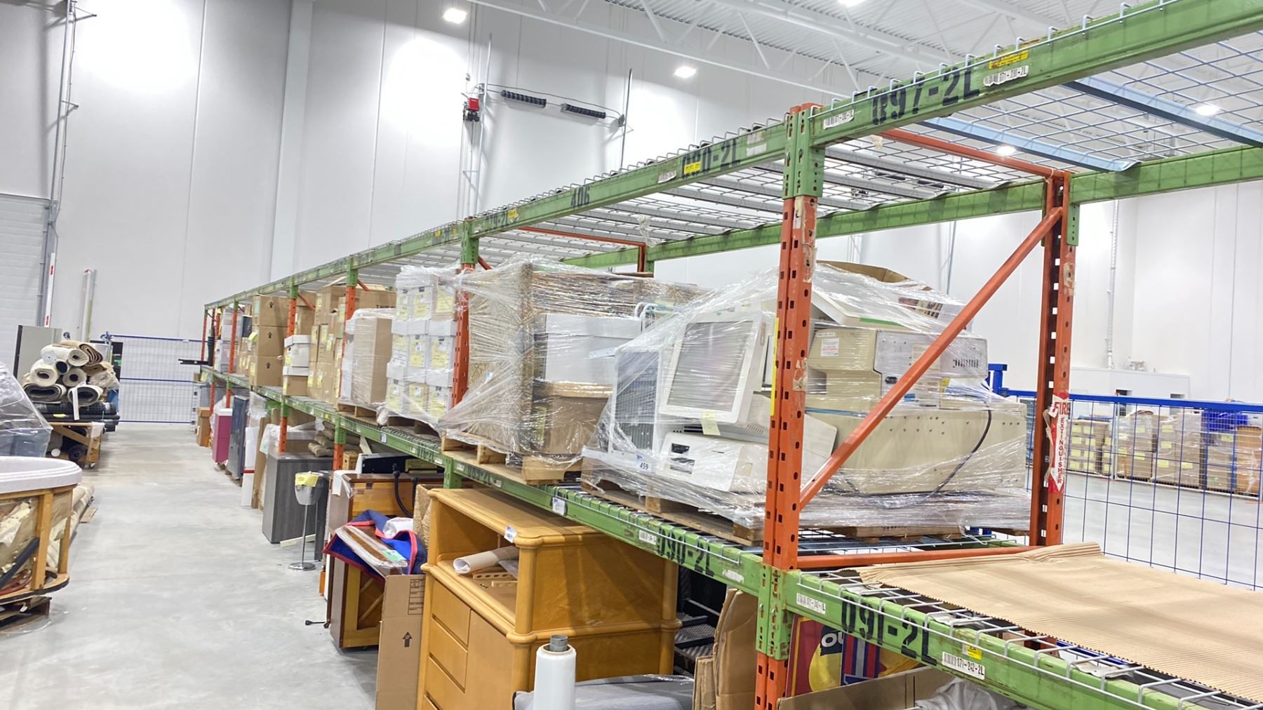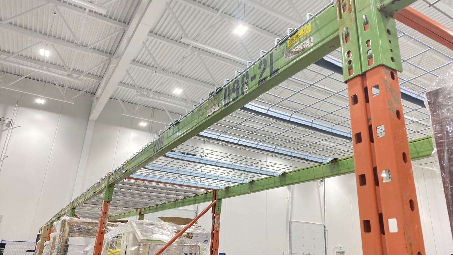 9 SECTIONS OF PALLET RACKING INCLUDING; (11) 8' UPRIGHTS, (44) 8' CROSS BEAMS & (36) RACKING MESH (CONTENTS NOT INCLUDED)