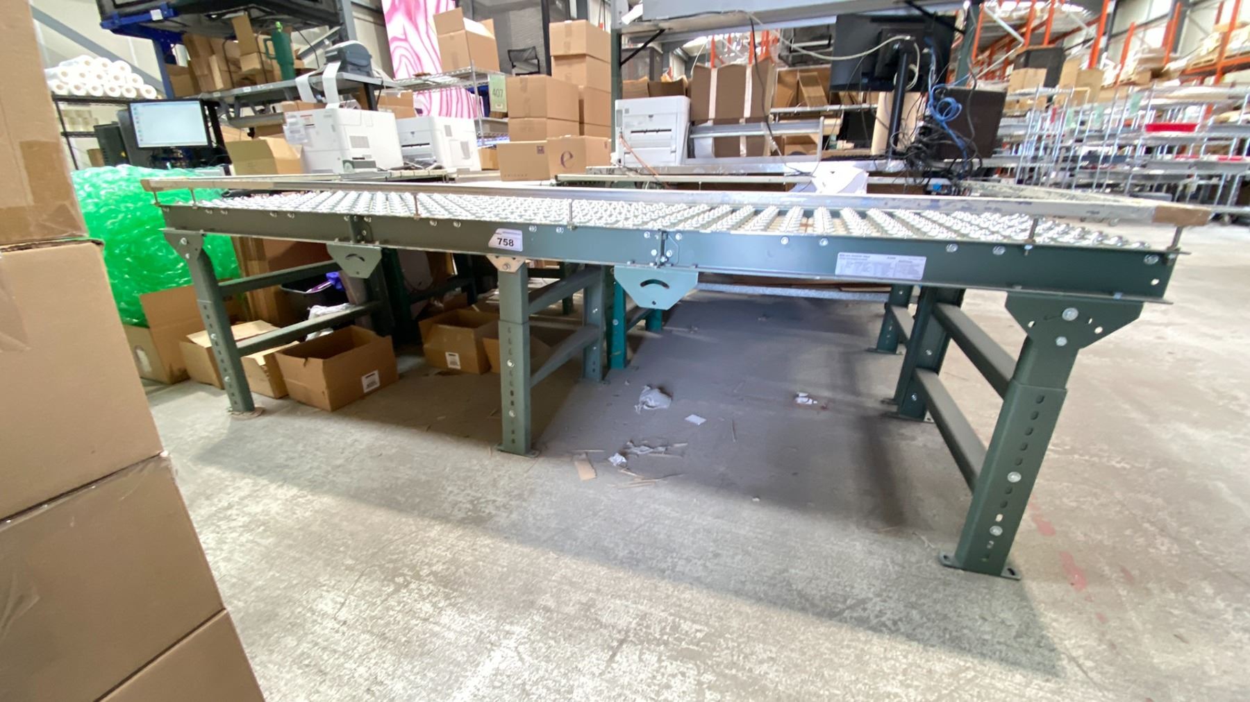 9' X 5' ROLLER BALL TABLE- COULD BE SEPARATED. ADJUSTABLE HEIGHT AND ANGLE. NO CONTENTS. BUYER TO DISMANTLE AND REMOVE.