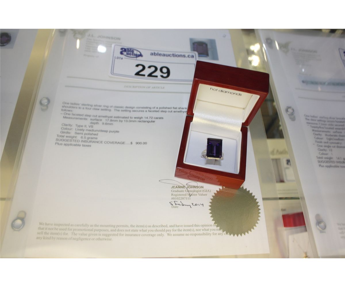 $900 GEMOLOGIST APPRAISED 14.72CT EMERALD CUT VS CLARITY AMETHYST RING