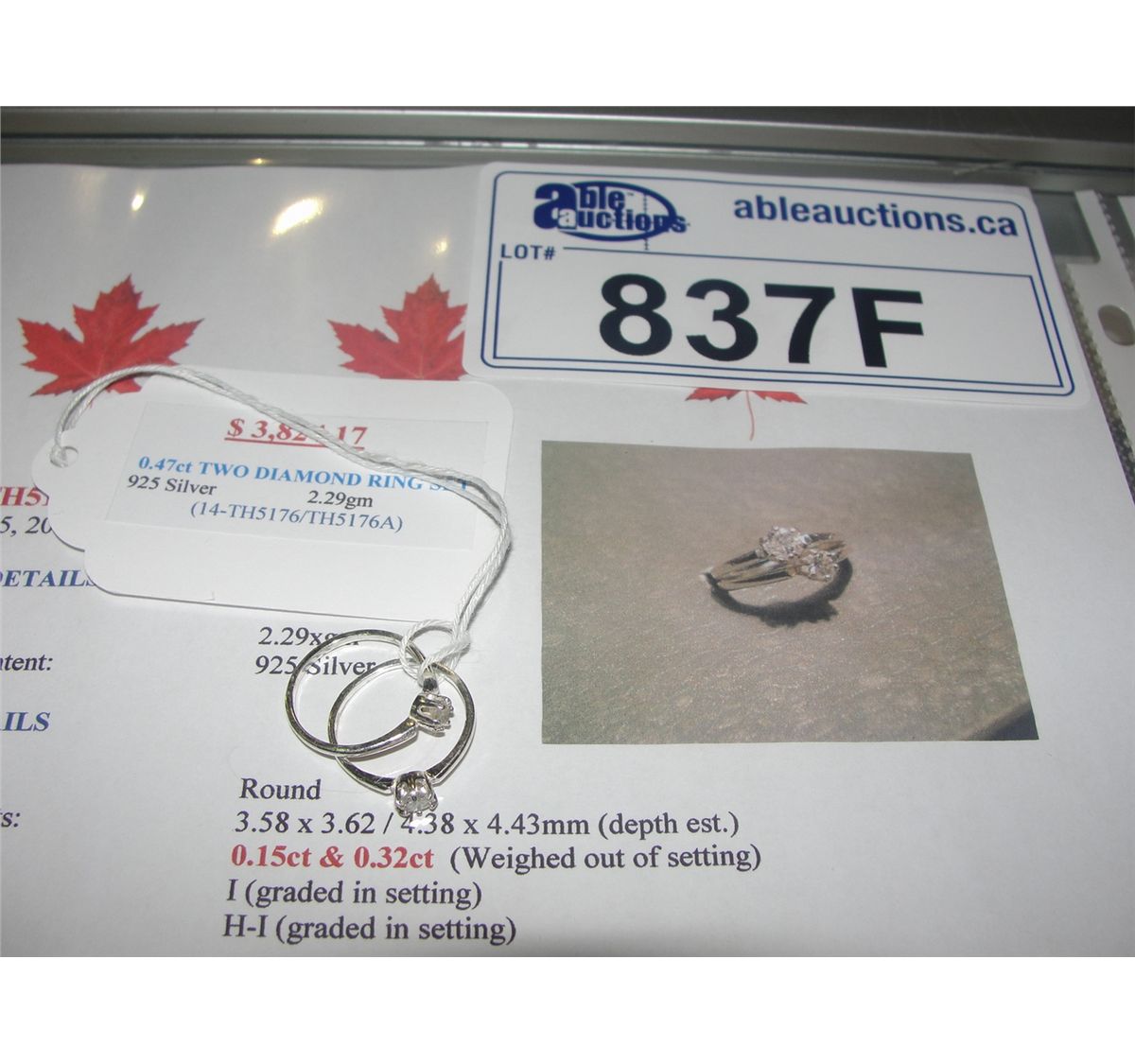 925 SILVER 0.47CARAT TWO DIAMOND RING SET APPRAISED VALUE $3824.17