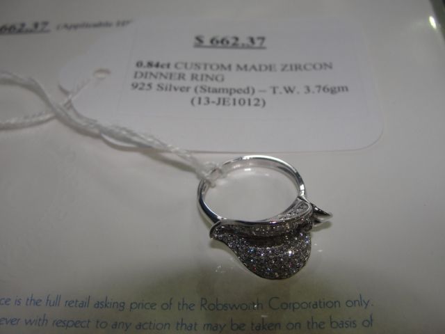 925 SILVER 0.84CT CUSTOM MADE ZIRCON DINNER RING APPRAISED VALUE $662.37