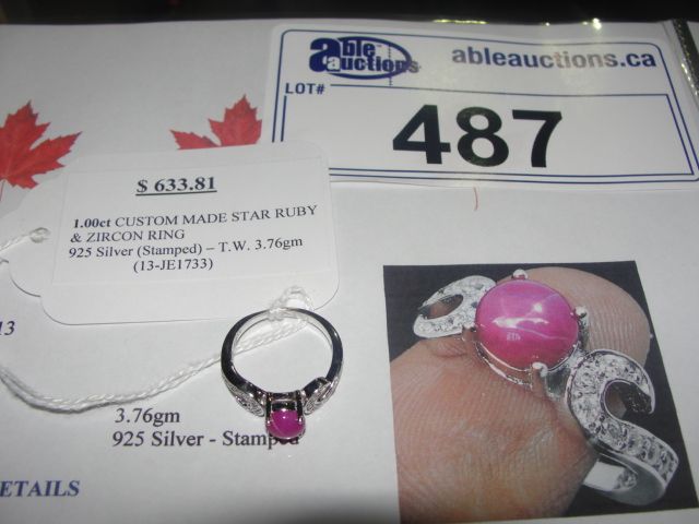 925 SILVER 1.00CARAT CUSTOM MADE STAR RUBY AND ZIRCON RING APPRAISED VALUE $633.81