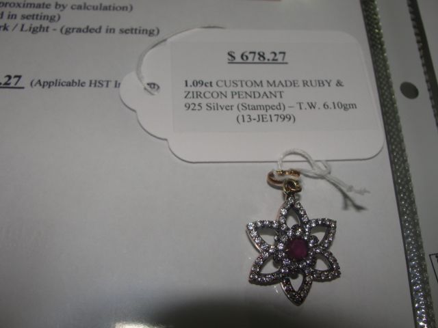 925 SILVER 1.09CARAT CUSTOM MADE RUBY AND ZIRCON PENDANT APPRAISED VALUE $678.27