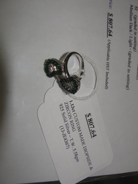 925 SILVER 1.13CT CUSTOM MADE DIOPSIDE AND ZIRCON RING APPRAISED VALUE $807.64