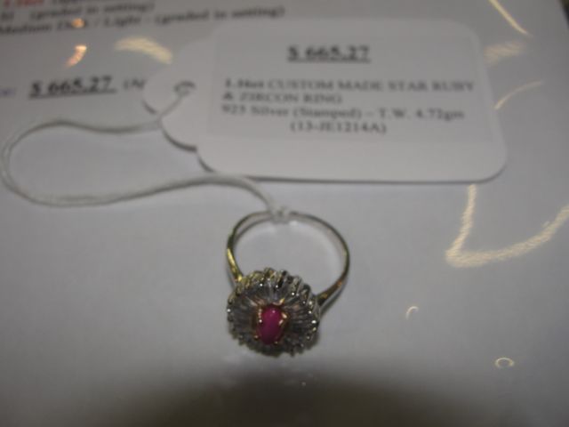 925 SILVER 1.16CT CUSTOM MADE STAR RUBY AND ZIRCON RING APPRAISED VALUE $665.27