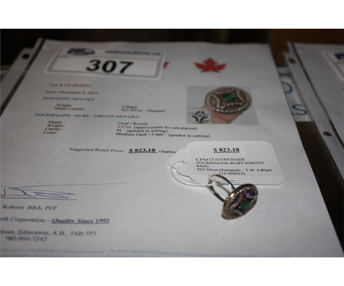 925 SILVER 1.17 CARAT CUSTOM MADE TOURMALINE RUBY AND ZIRCON RING APPRAISED VALUE $823.18