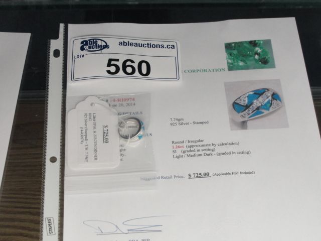 925 SILVER 1.26CT OPAL AND ZIRCON DINNER RING APPRAISED VALUE $725.00