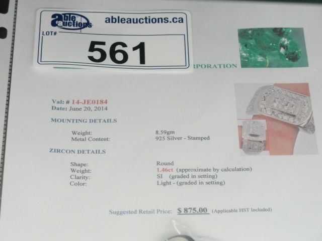 925 SILVER 1.46CT CUSTOM MADE MEN'S ZIRCON RING APPRAISED VALUE $875