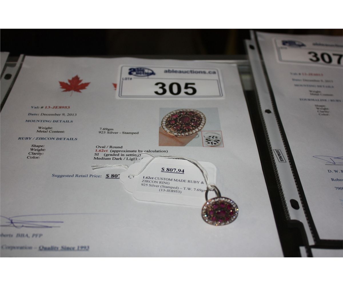 925 SILVER 1.62CARAT CUSTOM MADE RUBY AND ZIRCON RING APPRAISED VALUE $807.94