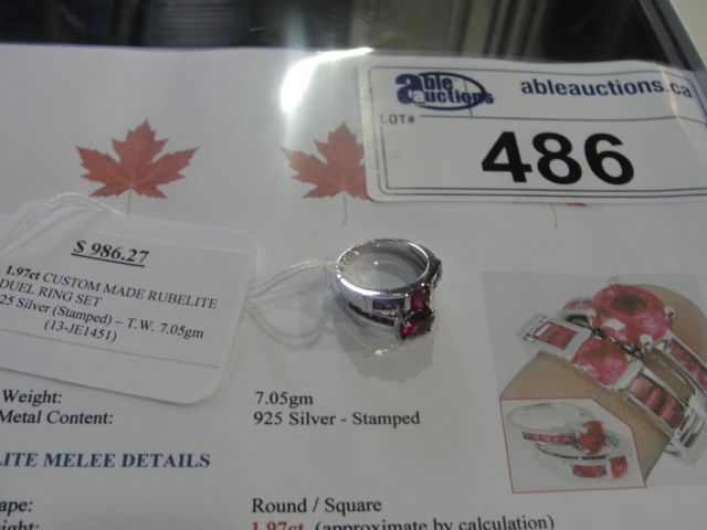 925 SILVER 1.97CARAT CUSTOM MADE RUBELITE DUEL RING SET APPRAISED VALUE $986.27