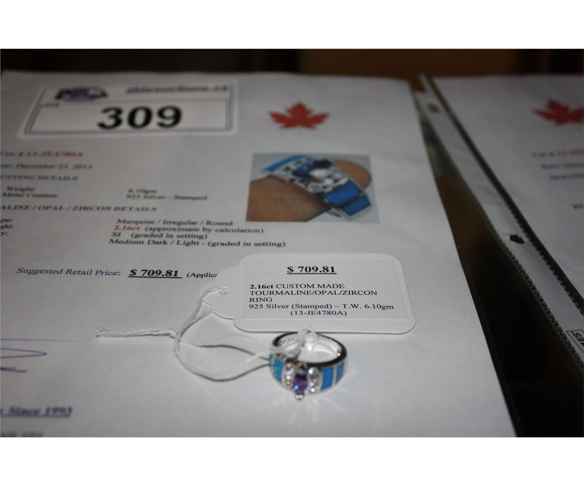 925 SILVER 2.16CARAT CUSTOM MADE TOURMALINE OPAL AND ZIRCON RING APPRAISED VALUE $709.81