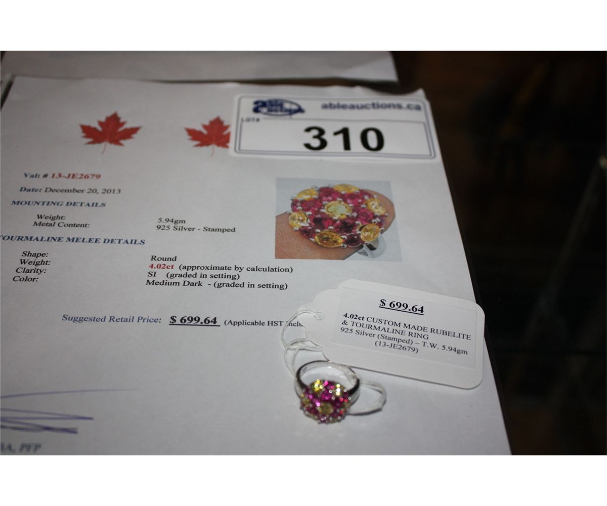 925 SILVER 4.02CARAT CUSTOM MADE RUBELITE AND TOURMALINE RING APPRAISED VALUE $699.64