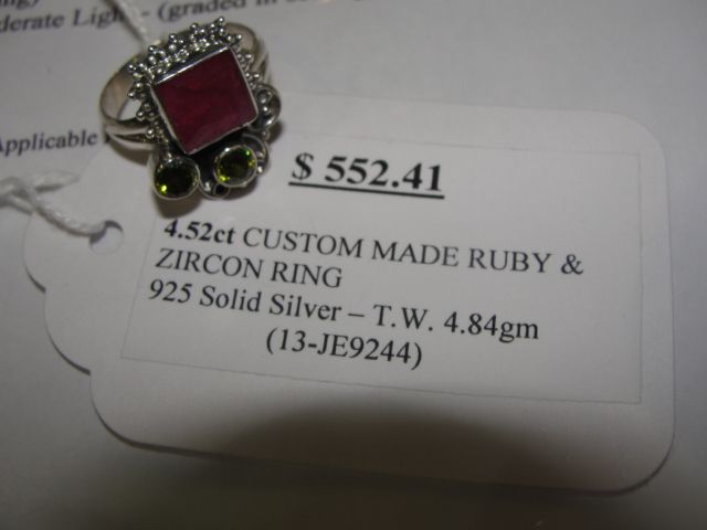 925 SILVER 4.52CT CUSTOM MADE RUBY AND ZIRCON RING APPRAISED VALUE $552.41