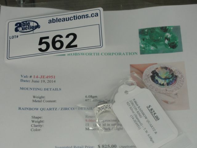 925 SILVER 9.06CT RAINBOW QUARTZ AND ZIRCON RING APPRAISED VALUE $825