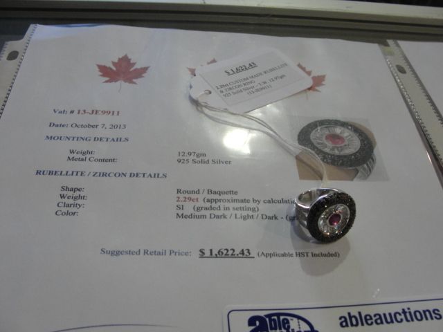 .925 SOLID SILVER 2.29CT CUSTOM MADE RUBELLITE & ZIRCON RING APPRAISED AT $1,622.43